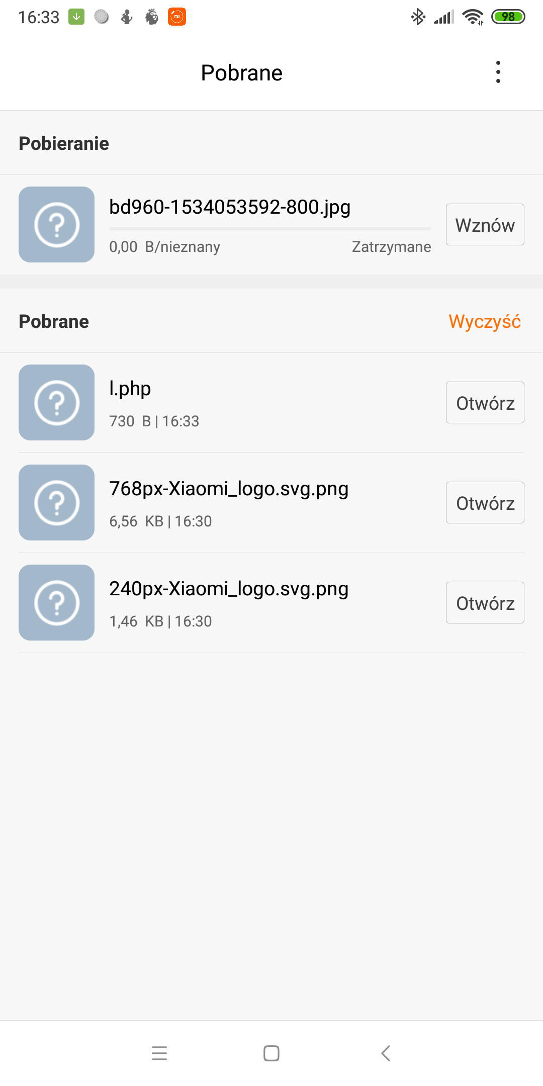 Mam problem na Redmi Note 5 Pro z MIUI Polska. Otóż przy pobieraniu plików z messengera wyskakuje link, który pobiera zamiast dokument plik .php i nie wiem jak to rozwiązać. Natomiast przy pobieraniu np. grafiki przez Chrome w pobranych obok nazwy pliku jest miniaturka ze znakiem zapytania i plik nie otwiera się. Jak można rozwiązać oba problemy?