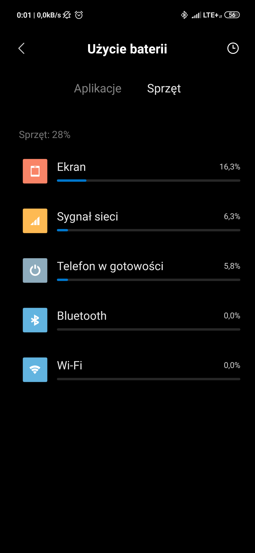 u mnie jest bardzo podobnie tzn: 20h od ostaniego ladownia - 19% to sygnal siec, 12% to ekran (ale właczony 3.5h) - mam obecnie jeszcze 49% baterii. Caly czas na wifi - w tym czasie bylem na lte tylko przez 1h - pozatym dane komorkowe wylaczone. Zauwazylem ze na wifi bateria trzyma super - i 6h ekranu nie bedzie problemem - przy lte - drastycznie to spada. Ps. przez noc - 8h - zeszlo mi jakies 7-8% (tylko wifi wlaczone). Mam wrazenie ze ten telefon taki juz jest - na wifi bateria super - na lte ucieka duzo szybciej. Sygnal sieci w statystykach baterii mi nie przeszkadza bo i tak czas na ekranie jest bardzo ok ( top 3 apek - 1. YT 2. instagram 3. system androdid).