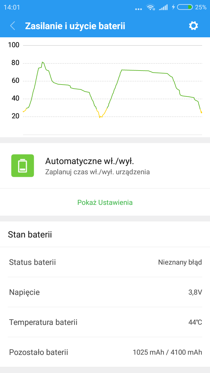Od jakiegoś czasu mam problem z baterią w redmi 4x. Wcześniej starczała mi na dwa do trzech dni użytkowania, teraz ok. 1 dzień. Mam też wrażenie, że telefon mocniej się grzeje. Status baterii wyświetla mi, że jest jakiś nieznany błąd. Czyżby bateria padała?