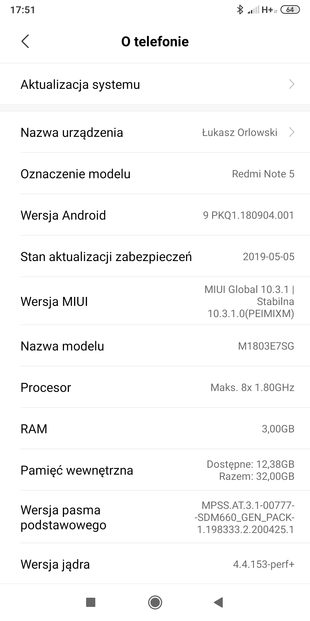 6. Posiadam telefon Xiaomi Redme Note 5, jakiś czas temu otrzymałem aktualizacje do Android 9.0 wcześniej przez aktualizacją wszystko było ok z smartbandem po aktualizacji smartband nie wyświetla osób dzwoniących (tak jakby miał ograniczenia w odczytaniu kontaktów) ale to jest tylko w przypadku dzwonienia. Jeśli chodzi o SMS przychodzące smartband normalnie wyświetla kontakt z karty SIM od której dostałem SMS. Na 90% problem leży po stronie telefonu, Smartband był podłączany do innych telefonów i tam wyświetla kontakt dzwoniący bez żadnych problemów. Jakieś pomysły jak można naprawić ten problem? W załączniku załączam wszystkie informacje odnośnie systemu.