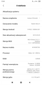 5. Posiadam telefon Xiaomi Redme Note 5, jakiś czas temu otrzymałem aktualizacje do Android 9.0 wcześniej przez aktualizacją wszystko było ok z smartbandem po aktualizacji smartband nie wyświetla osób dzwoniących (tak jakby miał ograniczenia w odczytaniu kontaktów) ale to jest tylko w przypadku dzwonienia. Jeśli chodzi o SMS przychodzące smartband normalnie wyświetla kontakt z karty SIM od której dostałem SMS. Na 90% problem leży po stronie telefonu, Smartband był podłączany do innych telefonów i tam wyświetla kontakt dzwoniący bez żadnych problemów. Jakieś pomysły jak można naprawić ten problem? W załączniku załączam wszystkie informacje odnośnie systemu.