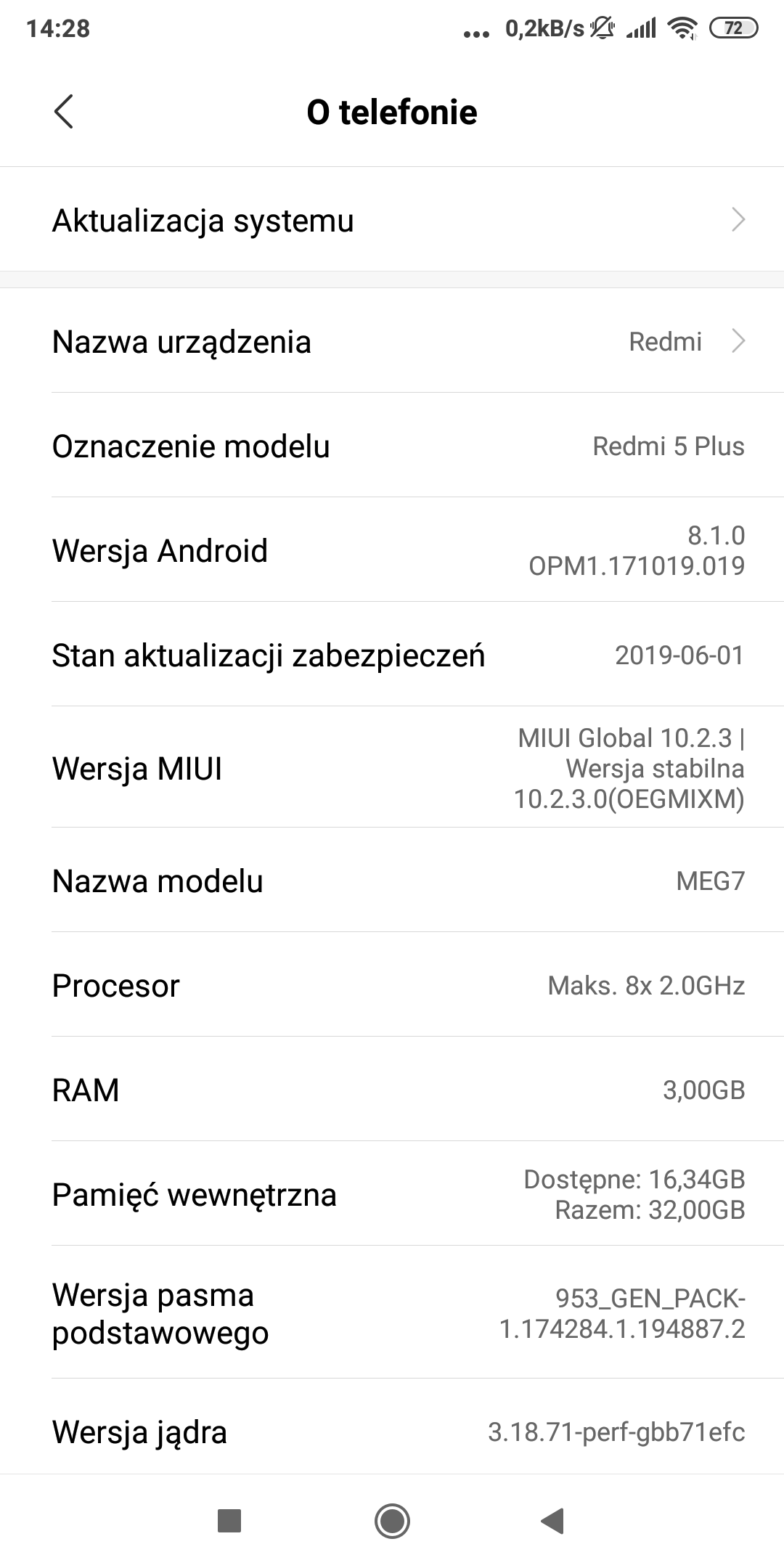 Tutaj screen z mojego telefonu z którym mam problemy, później wstawię z tego drugiego, który działa dobrze.