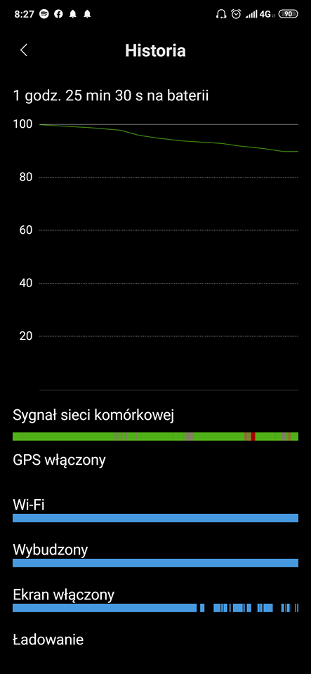 Hej ;D porównując oba takie same telefony zużycie baterii wyszło podobne ( po ok 1.30h - 90% ) ale okazuje się, że przy zupełnie różnym użytkowaniu.