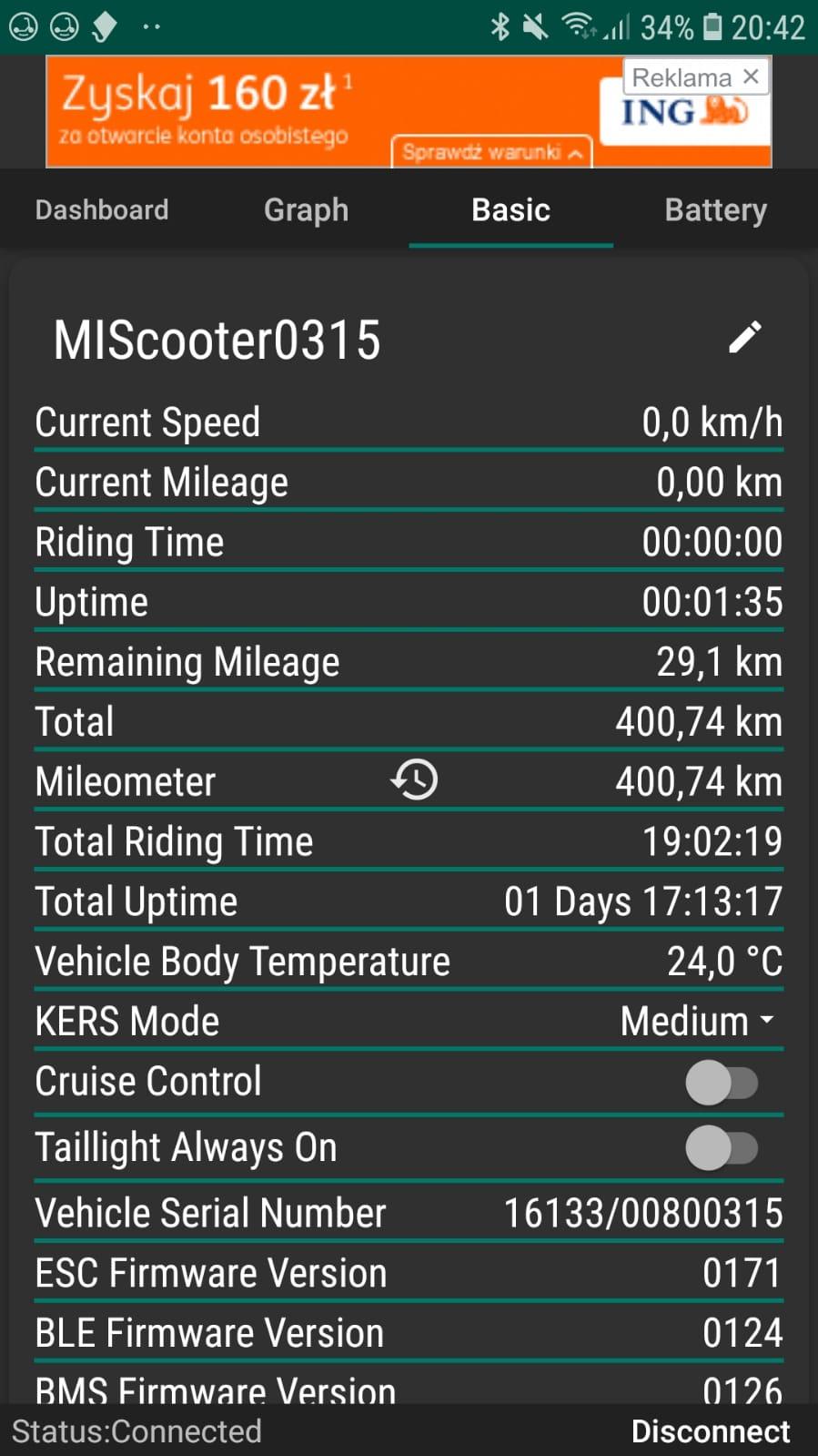 Witam. Pokrótce postaram się przedstawić sytuacje. Włączyłem wczoraj aplikacje Mi Home i automatycznie hulajnoga się zaczęła aktualizować poprzez apke. Wystąpił błąd i hulajnoga straciła łączność Bluetooth. Znalazłem na forum problem aby przywrócić ustawienia poprzez odpięcie modułu BMS oraz zrobienie restartu. Po wykonaniu czynności naprawiła się łączność ale hulajnoga jeździ max do 18-20km/h, tak jakby ciagle była w trybie ECO. Może ktoś może mi pomóc i podpowiedzieć jak to naprawić czy tylko serwis? Dodam tylko że przez Bluetooth mogę połączyć się tylko z Mi Home. W m365 tools nie pokazuje danych oraz w m365 downg także nie mogę nic zdziałać.