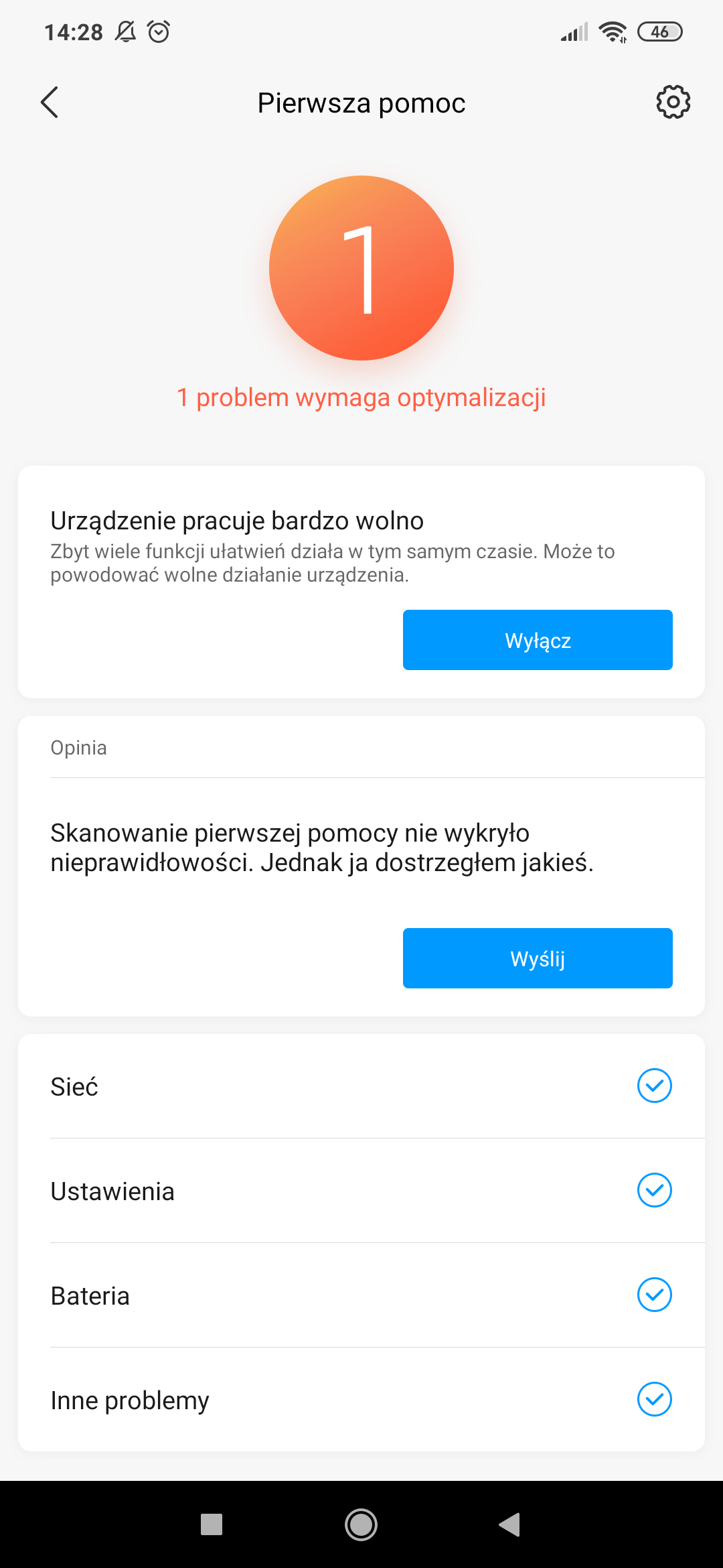 Cześć, mam pewien problem czy bardziej wątpliwość. Używam Mi9 od niedawna i ostatnio po przeprowadzeniu optymalizacji w panelu sterowania i kliknięciu "Napraw teraz" w zakładce "Pierwsza pomoc" urządzenie sygnalizuje problem z wydajnością, jak na załączonym zdjęciu. Przy czym po kliknięciu "wyłącz" okazuje się że jedyną opcją jaką mam włączoną jest autoobracanie ekranu. Orientuje się ktoś o co może chodzić i czy ewentualnie jest się czym przejmować ?