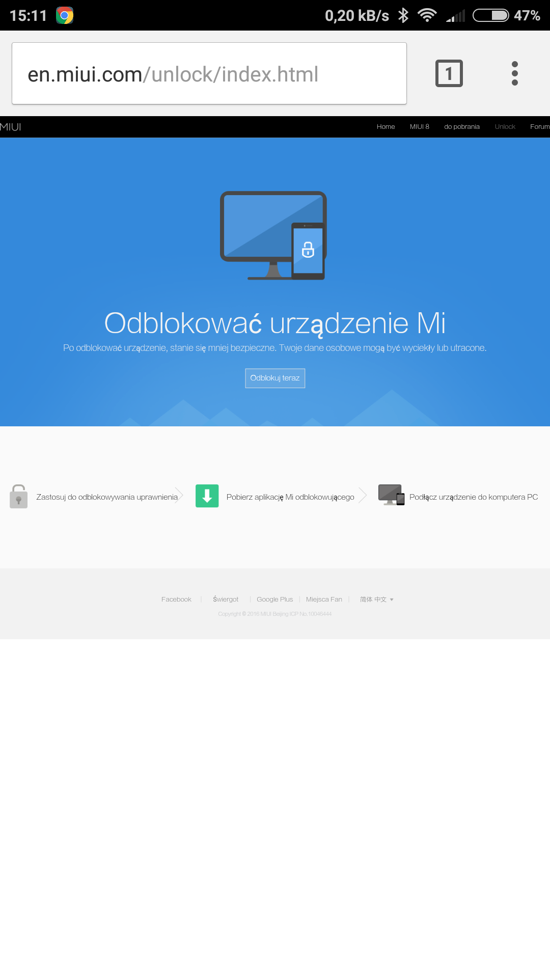 Dziś chciałem zainstalować miui.eu, ale po dzięki poradnikowi zorientowałem się że mam zablokowany bootloadera. Telefon działa teraz na globalu. Tak jak zobaczyłem w jednym z poradników chciałem napisać do xiaomi w prośbie o kod, ale zaraz po naciśnięciu odblokuj na miui.com/unlock/ pojawia się od razu narzędzie do ściągania MiFlashUnlocka. W między czasie powinno się pojawić jedno z okienek w które powinienem wpisać powód i numer telefonu. Co zrobić żeby to naprawic? -