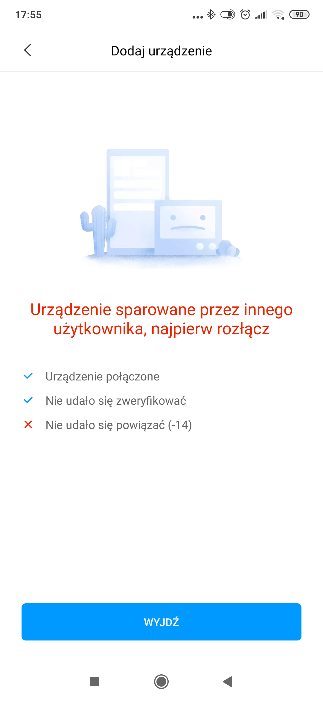 Ale równie dobrze to może być problem po stronie urządzenia. Próbowałeś na innym urządzeniu? Urządzenie wykrywa hulajnogę? Możesz włączyć np. światło z poziomu aplikacji?