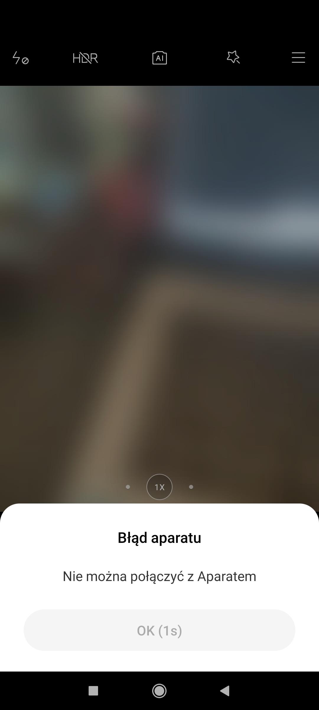 3. Wiele razy po otwarciu aparatu pojawia się komunikat że aplikacje przestała działać - jedyna opcja restart urządzenia
