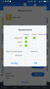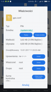 Odświeżam temat aby inne osoby przetestowały fix GPS moim sposobem. Ogólnie na moim Mi4 GPS można powiedzieć, że praktycznie nie działał, a teraz fixa łapie do 10sekund i nie gubi go podczas jazdy. Przy pomocy ES Eksplorer plik gps.conf kopiujemy do " / > system > etc". Root wymagany. (najlepiej zrobić sobie kopie zapasową własnego pliku) Po skopiowaniu pliku ważne żeby zmienić w właściwościach uprawnienia pliku tak jak na obrazku i restart urządzenia. Bez zmiany uprawnień gps nie zadziała gps.conf