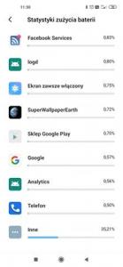 1. Witam mam problem z zużyciem baterii przez aplikacje? Inne. Tak jak na zdjęciu zużywa mi ok 30-35% co ładowanie. nawet przy stale włączonym ekranie zużycie jest większe niz ekranu. Nie mam roota i nie bardzo chciałbym go robić zeby nie utracić gwarancji Jak może sprawdzić co tak ciagnie prąd?