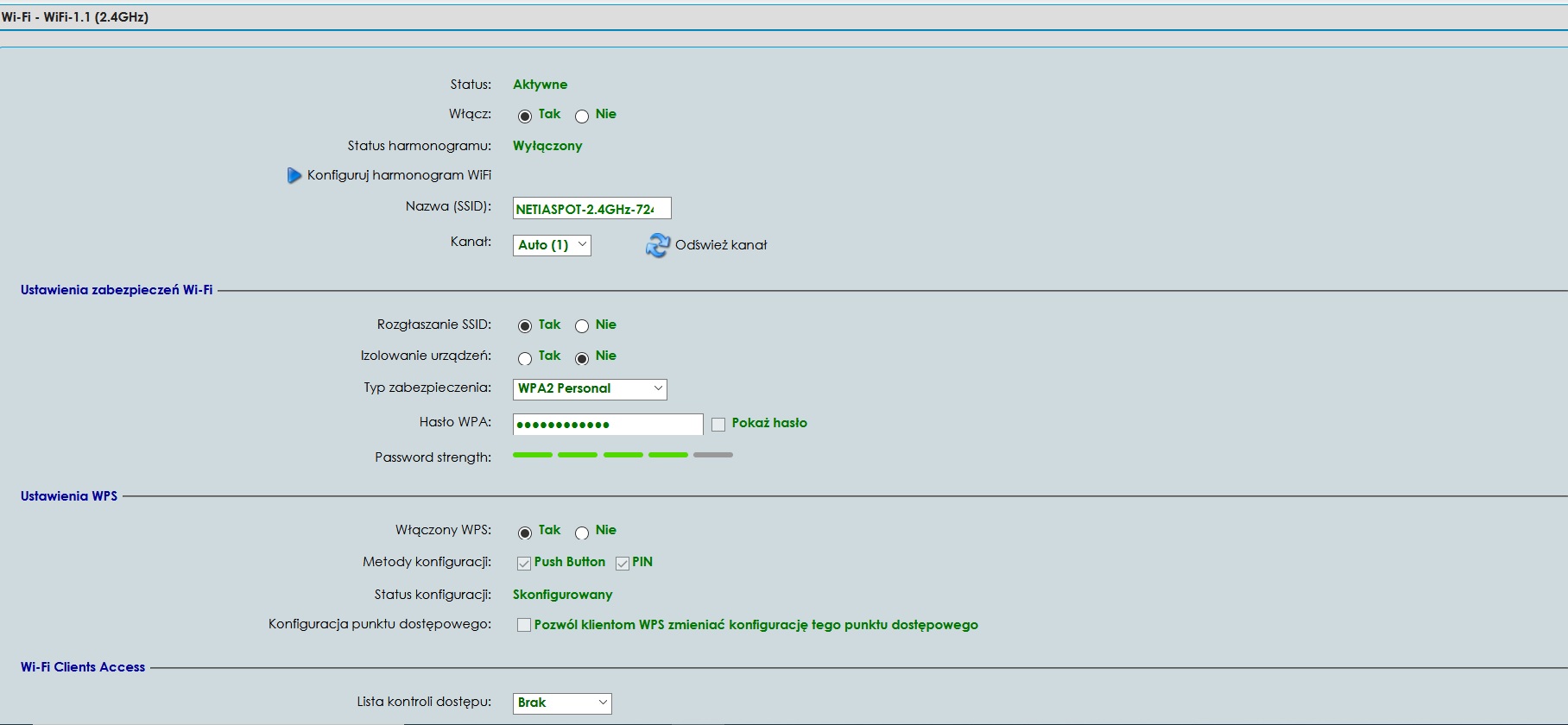 Internet mam z Netii ( zabezpieczenie - Wpa2 ) - pasmo 2.4 GHz .