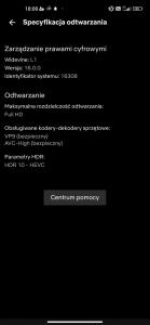 5. Mam mi 10 i powinno być fhd, a nawet uhd gdybym wykupił pakiet. Tak poziom zabezpieczeń to L1. Czasami jak odinstaluje aplikacje Netflix i zainstaluje ponownie to da się przez chwilę oglądać fhd z HDR ale po paru minutach wyskakuje błąd, a raczej dwa i lipa Odinstalowałem i znowu wróciło do normy (czasami nawet to nie działa). Spróbuję zapisać kod błędu jak już się pojawi