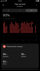 To jest wykres miesięczny. Proszę spojżeć na dolny pułap. Pomiar zatrzymuje się na poziomie 90 każdorazowo. Wygląda to bardzo nienaturalnie tak jakby zablokowano możliwość pomiaru poniżej 90. Bug czy celowe zagranie? Jak myślicie?