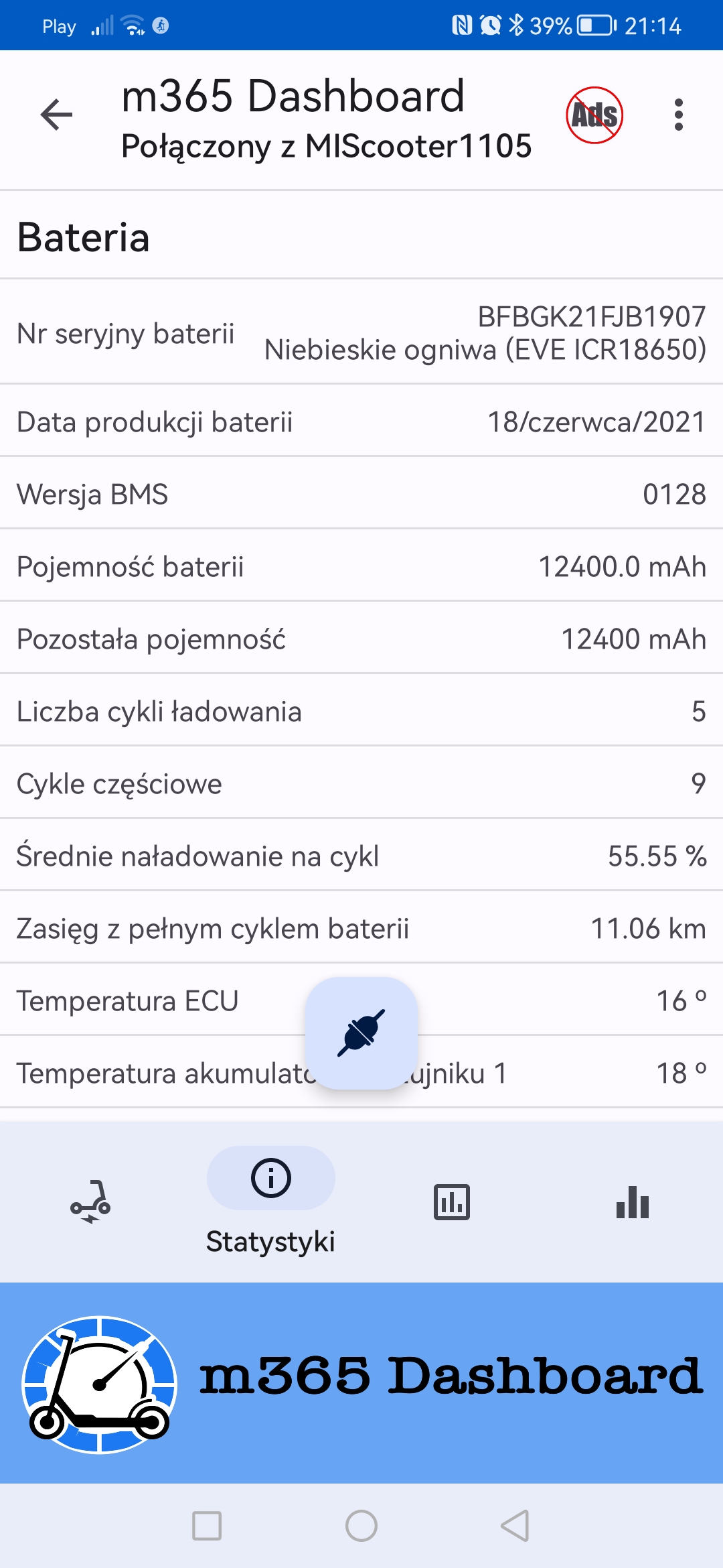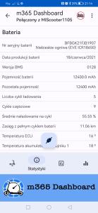 3. OK. Wgrałem BMS 126, BLE 134. Teraz m365 Dashboard pokazuje na głównym ekranie 12400 m365 Tools nadal pokazuje 5200 , istna loteria, jak tak mają działać te aplikacje to jak wierzyć w inne parametry. P.S. Na tym BMS 126 zauważyłem, że ładuje się dłużej (ok 6-7h) i dobija do 4,15V na pakiet (wcześniej do 4,05V). Wychodzi na to, że faktyczna pojemność aku jest w porządku.