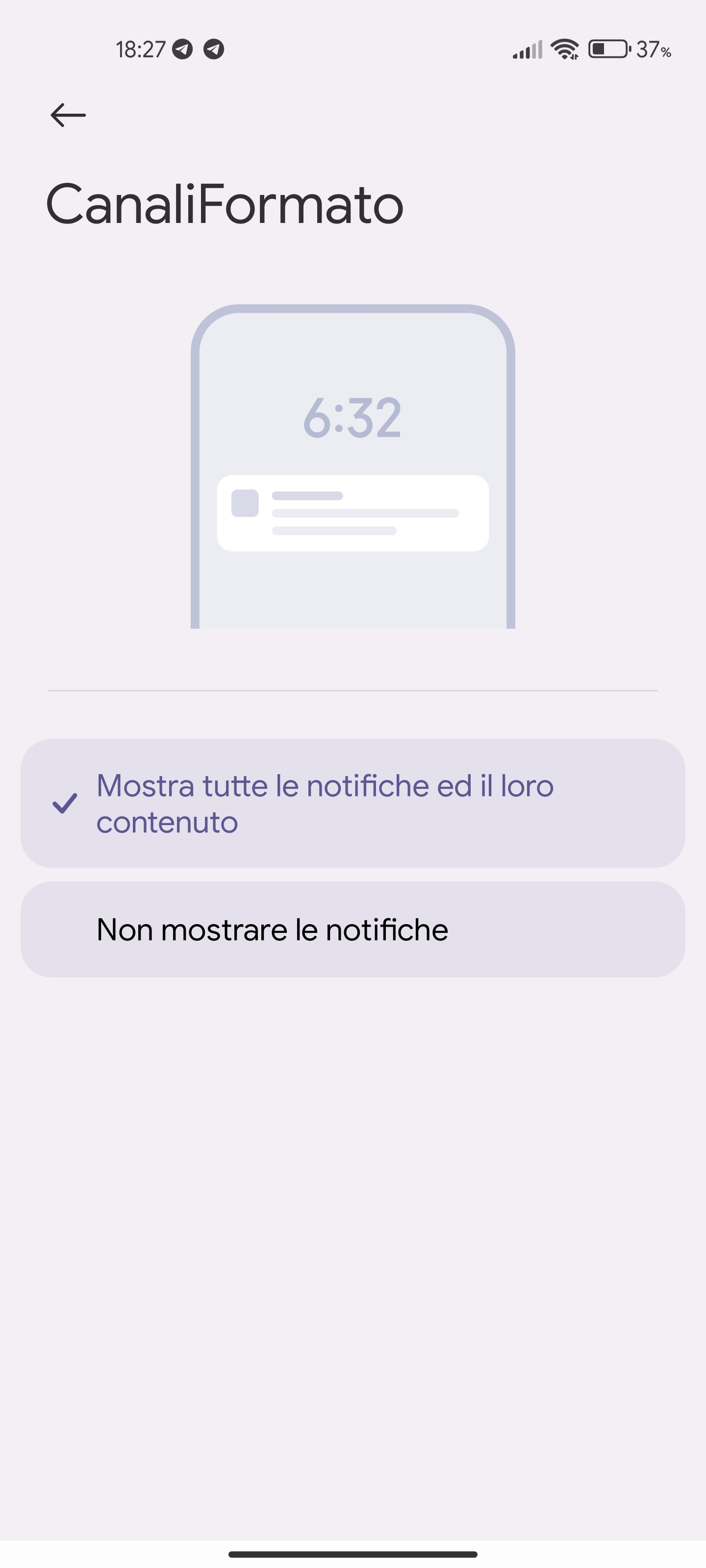 Takze tego: Sprawdz sobie to Na pierwszym obrazku jest Telegram na dole widzisz Mostra Notifiche (Notyfikacje) ja wejde w piersza lepsza opcje np: "Canali" (Canaly), potem w opcje na samym dole i powinienes miec tak ustawione, czyli powiadomienia na ekranie powitalnym w aplikacji Signal i bankowej. Nie wiem dokladnie jak to jest w twoim przypadku bo nie uzywam tych app , ale tak powinno mniej wiecej wygladac.