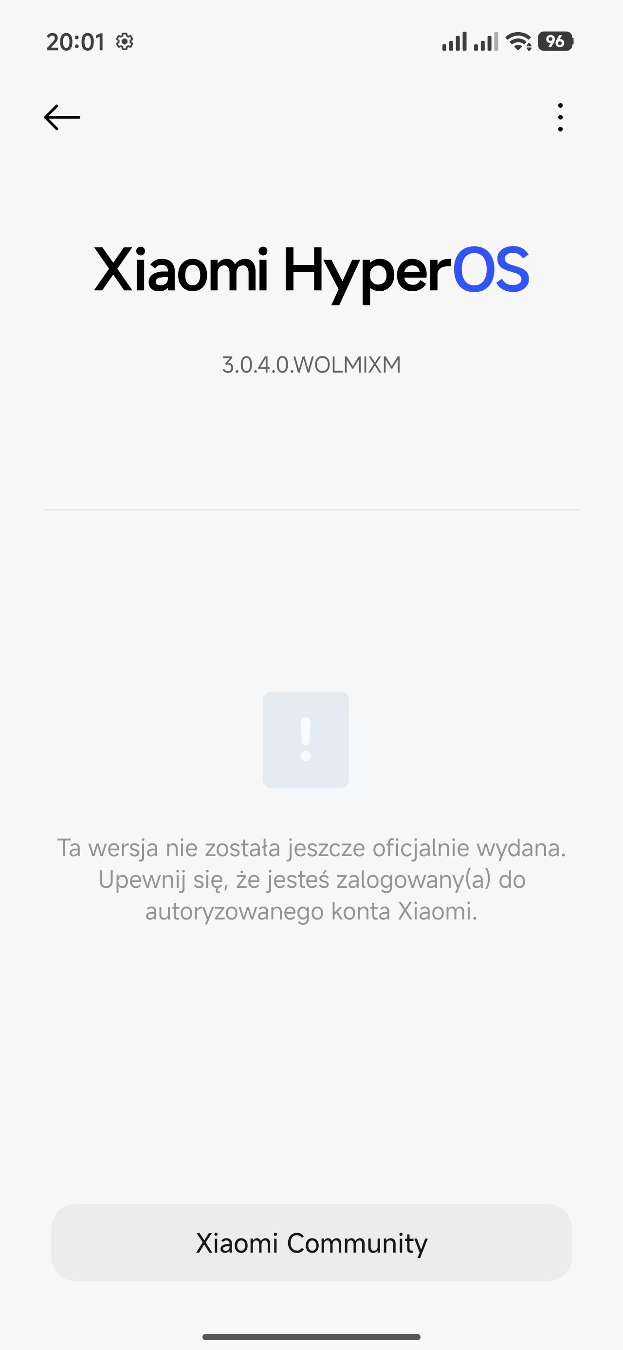 Mam pytanie. Czy i co mozna zrobic z komunikatem ze wersja OS nie jest jeszcze wydana i zebym sie upewnil czy jestem zalogowany do konta Xiaomi ?
