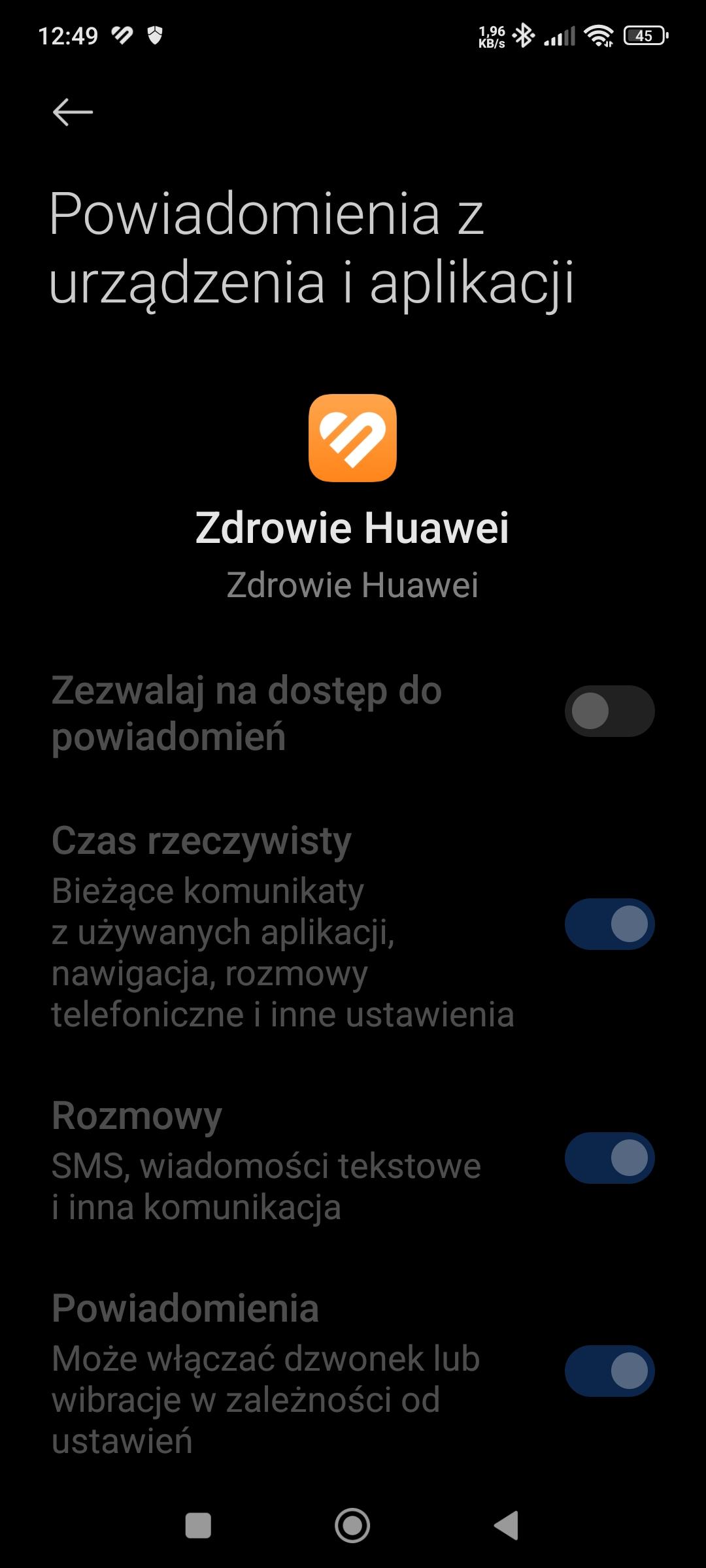 2. Witam jestem od dwóch dni posiadaczką telefonu Xiaomi Redmi Note 13 Pro 4G system Hyperos . Próbuje sparować telefon z zegarkiem Huawei Watch Fit 2. Połączenie się udaje natomiast zegarek nie wyświetla powiadomień typu sms, whatap, itp. W ustawieniach telefonu w aplikacji zegarka nie mogę ustawić powiadomień żeby były włączone wyskakuje błąd - zdjęcia w załączeniu. Wcześniej zegarek był podłączony do Xiaomi Redmi Note 9 Pro i wszystko działało. Prosze o pomoc, pozdrawiam