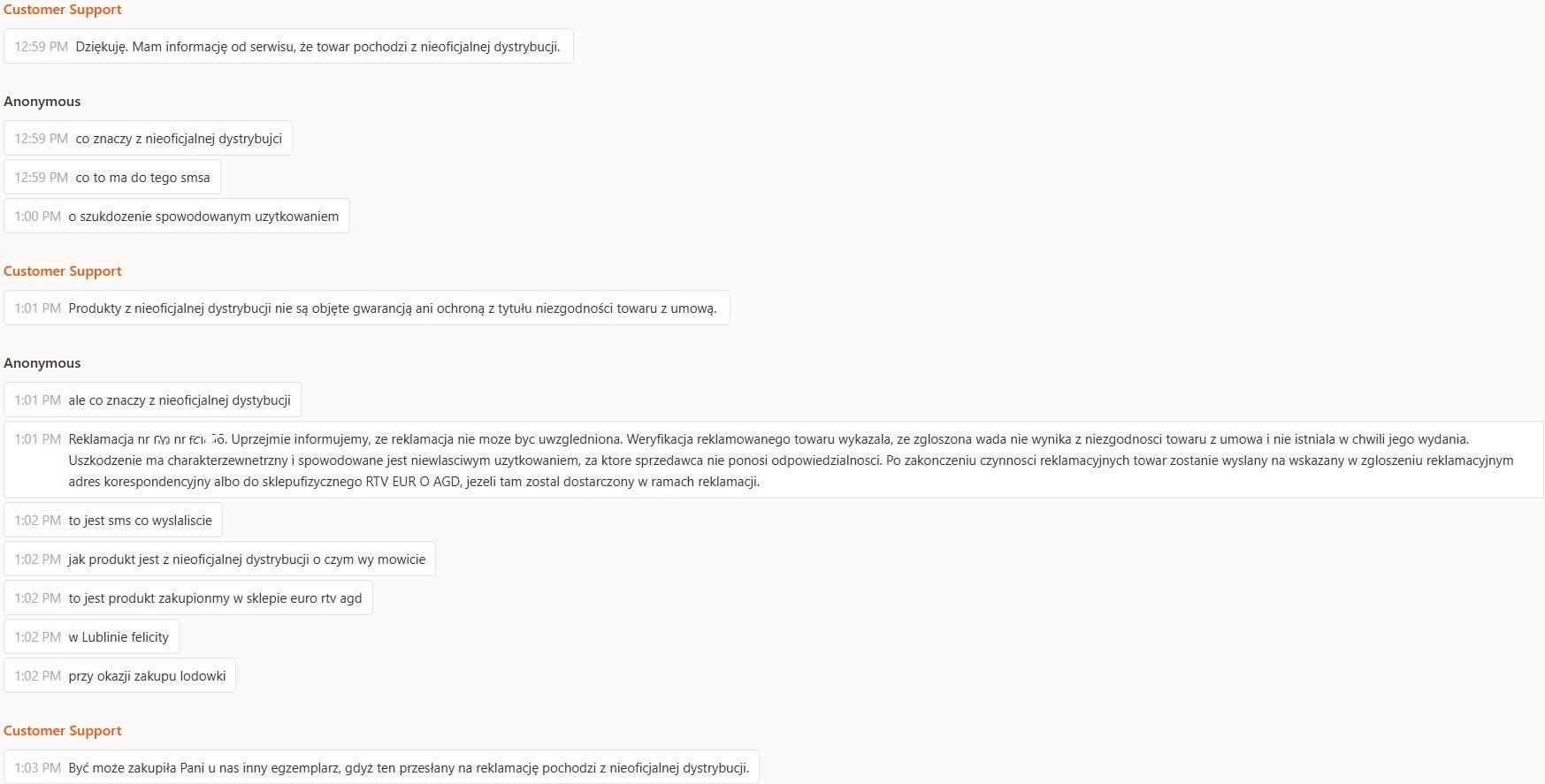 Mi euro rtv agd przyjęli do zwrotu ze na niezgodność towaru oczywiscie wysyłając na wysłke. Oto co odpisali dzisiaj z serwisu. To jest mistrzostwo swiata.