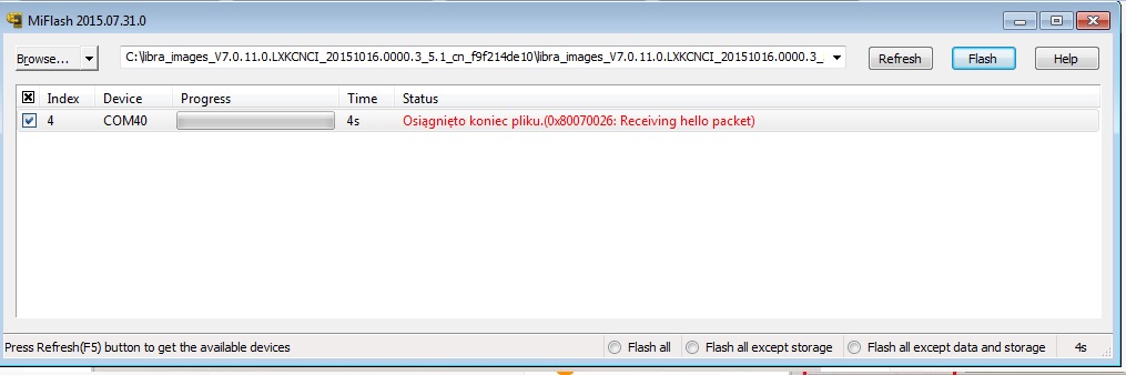 konieczne jednak było odłączenie baterii, następnie udało mi się wgrać rom poprzez Miflash