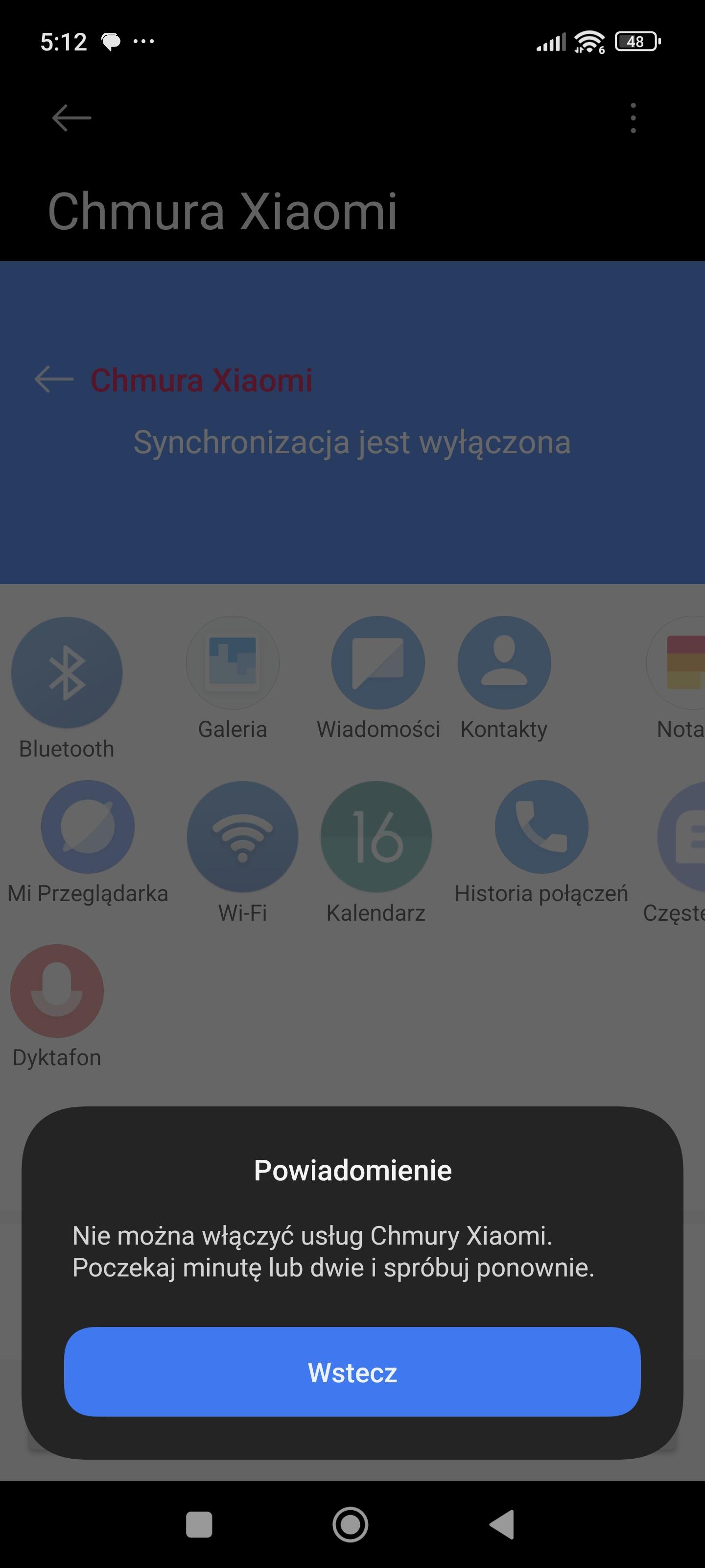 2. Witam, Jakiś czas temu podczas konfiguracji smartfona cofnąłem zgodę na synchronizację konta z chmura Xiaomi. Mam teraz problem z ponownym przywróceniem synchronizacji. Jak w ustawieniach telefonu przejdę do chmury i próbuje ją ponownie zsynchronizować wyskakuję błąd. Czy ktoś miał podobny problem? Xiaomi Polska twierdzi że nie da się z tym nic zrobić i to wgl koniec. Proszę o pomoc i z góry dziękuję.