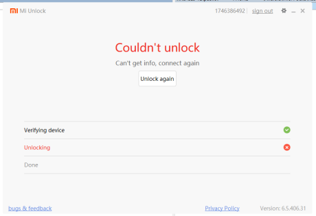 Witam. Chciałbym odblokować bootloader a moim telefonie Redmi 5. Wersja oprogramowania to Global Stable 11.0.2.0. Telefon przygotowałem według istniejących poradników. Po uruchomieniu telefonu w trybie fastboot i podłączeniu do komputera, uruchamiam program Mi Unlock, loguję się w nim na swoje konto i przechodze do sekcji odblokowania. Klikam na Unlock, proces pokazuje cyferki od 0 do 100% i kończy działanie komunikatem "Couldn't unlock Can't get info, connet again" - Linia Verifying device ma zielonego "ptaszka", linia Unlocking jest na czerwono i ma czerwone przekreślone kółko. Czy da się w tym telefonie odblokować bootloader?