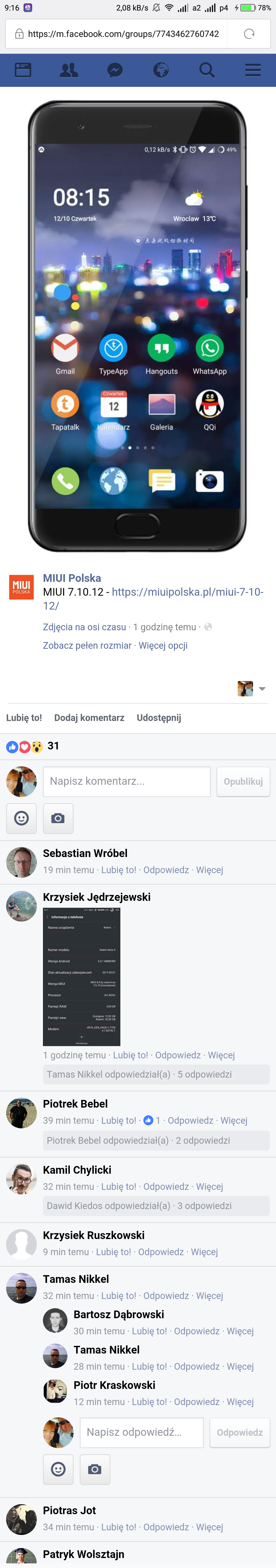 Wiesz co nie wiem ., Możliwe że ktoś zaktualizował w sensie mama nacisnęła jak się jej pojawiła aktualizacja .... To nie mój telefon więc ci nie powiem dokładnie -vzekam.tylko aby wygrać to miui pl 72 godziny Mają siedzibę w Częstochowie czy punkt - gwarancji jest dwa lata bo przed chwilą dzwoniłem Masz tam polski numer po prawej stronie możesz zadzwonić i się zapytać o szczegóły Nie mam linka do aukcji brat to kupował ale oni ci powiedzą przez telefon Jedni kupują taniej drudzy drożej taka kolej rzeczy Czy są januszami biznesu to się okaże dopiero podczas napraw gwarancyjnych . Mam nadzieję że takich nie będzie przez najbliższe pół roku czy rok Na tą chwilę nie mam do nich zastrzeżeń ,no może poza tym że ,wystawiają towar którego fizycznie nie mają . Masa ludzi w Polsce prowadzi działalność i aby nie płacić w pl rejestruje spoko za granicą Mnie tam obojętne od kogo kupuję ważne żeby nie było problemów . A jak będą jakieś to poinformuje -