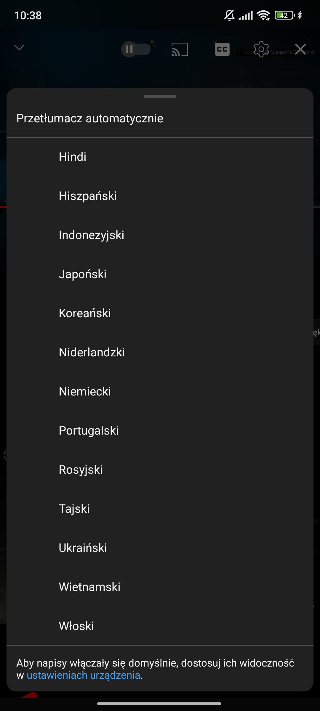Witam. Chciałbym się dowiedzieć czy jest możliwość ustawienia aby youtube tłumaczył napisy na język polski. W załączniku screen z aplikacji, gdzie są inne języki, ale polskiego brak. -