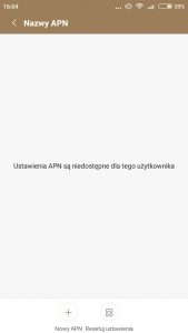 Ustawienia APN są niedostępne dla tego użytkownika