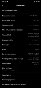 Witam Xiaomi mi9 powinien dostać aktualizację do MIUI 11 do 12.11.2019, dziś jest 6.12.2019. Mój mi 9 jednak po wejściu do opcji "Aktualizacja systemu" uważa, że nie ma dostępnych aktualizacji, oczywiście kliknięcie "Szukaj aktualizacji" nie pomaga ;) Obecnie zainstalowana wersja to "MIUI 10.2.14.0 | stabilna (PFAMIXM)". Czytałem o ręcznym wgrywaniu aktualizacji jednak z tego co wiem trzeba by było instalować TWRP, a nie chciałbym ani trochę ingerować w te aspekty telefonu, W starych MIUI z tego co wiem można było wskazać zipa oficjalnego roma (ten ze strony xiaomi) i wtedy wymuszało się aktualizacje. Zależy mi na tej aktualizacji ponieważ liczę, że rozwiąże ona problem nie wyłączania się ekranu podczas rozmowy (za co odpowiedzialny jest proximity sensor, który "elektronicznie" działa, sprawdziłem narzędziem testowym xiaomi, więc jest to problem software'u). Czy istnieje jakiś bezpieczny i łatwy sposób na zaktualizowanie do MIUI 11? Czemu wszyscy inni mogą aktualizować bez problemu?