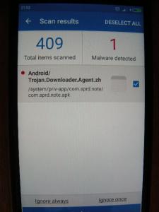 Na moim Xiaomi Redmi 3 przy skanowaniu pojawił się komunikat o trojanie. Podjąłem próbę usunięcia jednak jest to niemożliwe. Próbowałem już w kilku programach antywirusowych i bez rezultatu (pojawia się komunikat że nie mam możliwości usunięcia aplikacji systemowych). Aplikacja ta ma dziwną nazwę "ETYKIETA".