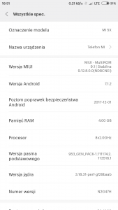 Czołem wszystkim ! Jest to mój pierwszy post na tym forum, więc uznałem za adekwatne się przywitać. Przejdę do meritum. Kupiłem MI 5X, dzisiaj do mnie przyszła paczka. Oczywiście przed zakupem zapoznałem się dokładnie z tym modelem, jak wygląda sprawa oprogramowania etc. Spodziewałem się, że dostanę telefon z softem CHINA (tym oryginalnym) lub jakimś syfmiui (global, którego nie ma). Zostałem zaskoczony, gdyż soft, który jest na moim telefonie jest jeszcze inny. Mianowicie MIUI-MultiRom. Tutaj rodzi się moje pytanie. Wiem, że próba wgrania MIUIPolska na fakeglobal = cegła. Natomiast nie znalazłem nic w necie o tym konkretnym sofcie, który jest u mnie. Wyskakują mi tylko ruskie strony.. może magicy z micenter coś doradzą ? Nie wiem czy próbować zamknąć bootloader i wgrać CHINA ROM, czy od razu próbować MIUIPolska ? Gdyby to był fakeglobal, o którym czytałem już wątki, to nie było by większego problemu, a tak to wolę spytać o radę, gdyż nie chcę uwalić nowego telefonu. Załączam screena z ustawień: z góry dziękuję za pomoc