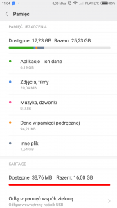 Witam. Mam problem ze swoim Note 4. Mianowicie nie mogę otworzyć niektórych aplikacji sp SHealth(aplikacja Samsunga) ponieważ wyskakuje mi informacja: " Nie można otworzyć aplikacji. Za mało miejsca w telefonie. Usuń niektóre elementy i spróbuj ponownie". Podobny problem jest z muzyką którą posiadam na karcie SD. Pokazuje mi informację że plik nie istnieje. Zwykle wyjęcie i włożenie karty SD pomaga, jednak jest to zbyt czasochłonne. Przy chęci przesłania jakiegoś screena czy zdjęcia znajomym na MSG nie widzę w ogóle plików z pamięci. Próbowałem na innej karcie SD jednakże problem jest dalej ten sam. Czy ktoś miał podobnie? Proszę o pomoc. Moja wersja MIUI: MIUI Global 9.5| Stabilna 9.5.9.0(NCNFMIFA) Pamięć wewnętrzna : 8.6GB/32 Karta SD: 0.968GB/2GB