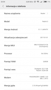 Witam, Zakładam temat, bo co prawda znalazłam na forum pojedyncze wzmianki o problemach z zasięgiem, jednak w tematach o innych modelach i zupełnie innych usterkach. A kiedy próbuję szczegółowego wyszukiwania słówka "zasięg" w dziale Redmi 3 Pro, nieodmiennie strona pokazuje mi komunikat o błędzie. Opis problemu: Telefon Xiaomi Redmi 3 Pro zakupiłam w lipcu i problem występuje od samego początku. Kiedy używam transferu danych w sieci komórkowej telefon traci co jakiś czas (losowo, czasem jest to 5 minut, czasem 10, bardzo różnie) zasięg sieci komórkowej (nie mylić z połączeniem z internetem - widzę komunikat No service, emergency calls only) na około minutę. Nie ma tu wiele więcej do powiedzenia, chętnie wykonam jakiekolwiek czynności "diagnostyczne", jeśli ktoś coś podpowie Czy to wina "syfiastego" ROMu? Co złe tłumaczenie może mieć do zrywania zasięgu? Co ciekawe, byłam w październiku w Albanii i używałam przez tydzień internetu z tamtejszej sieci komórkowej T-Mobile i nie zaobserwowałam wcale występowania tego problemu. To kazało mi sądzić, że może jest coś nie tak z moją (tutejszą) kartą SIM, więc wymieniłam ją na nową. Niestety, to nie pomogło. Wersja systemu: MIUI Global 7.3 Stable 7.3.1.0.0. (LHPCNDD) Sieć z której korzystam: Plus GSM