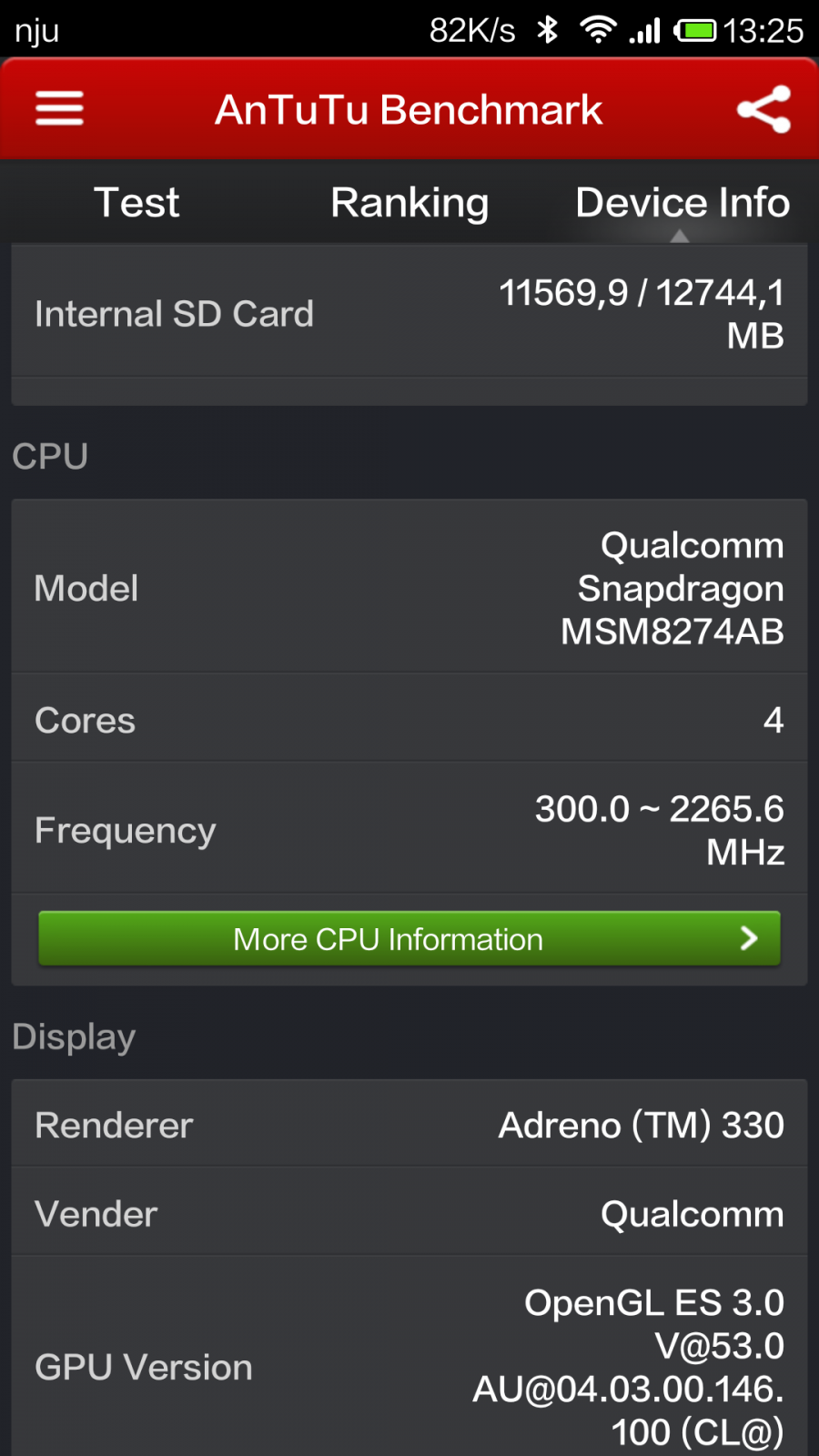 ck21 Opublikowano 29 Kwietnia 2014 Opublikowano 29 Kwietnia 2014 Mnie to też zastanawiało ale pomyślałem, że AnTuTu jeszcze za głupi na 64 GB. Fakt, że na nalepce (IMEI + S/N) oraz na pudełku też jest 64 GB (potwierdzał to kilkakrotnie sprzedawca). Na PC widzę pamięć wew. ok 13 GB... Towar z Aliexpress, ponad 450$ Załączam obrazki z CPU-Z. Gdzie jestem ?...