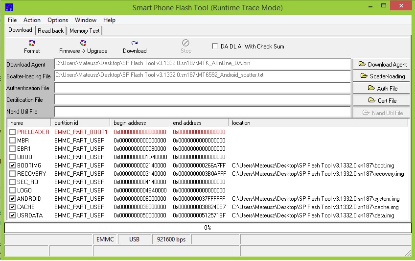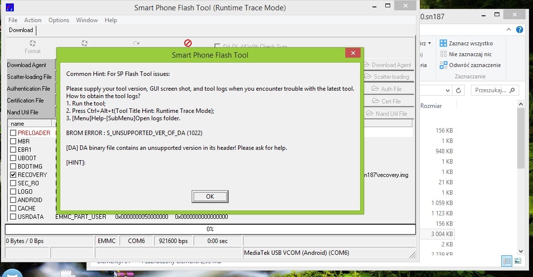 Acid Opublikowano 29 Maja 2014 Opublikowano 29 Maja 2014 Chwila inaczej... Moja pomyłka. Wskażcie ten scatter i odptaszkujcie wszystko prócz recovery i dajcie Download a nie upgrade firmware. P.S: nie wgracie żadnego romu zip w ten sposób. Dlatego wcześniej pisałem, że trzeba zrobić poprawny image czyli partycje system, data, cache itp zapisane jako .img. No tak.. ale nawet jeśli wgracie recovery to i tak nie macie jak tam wejść bo nie działa wchodzenie w recovery z poziomu bootloadera ;/
