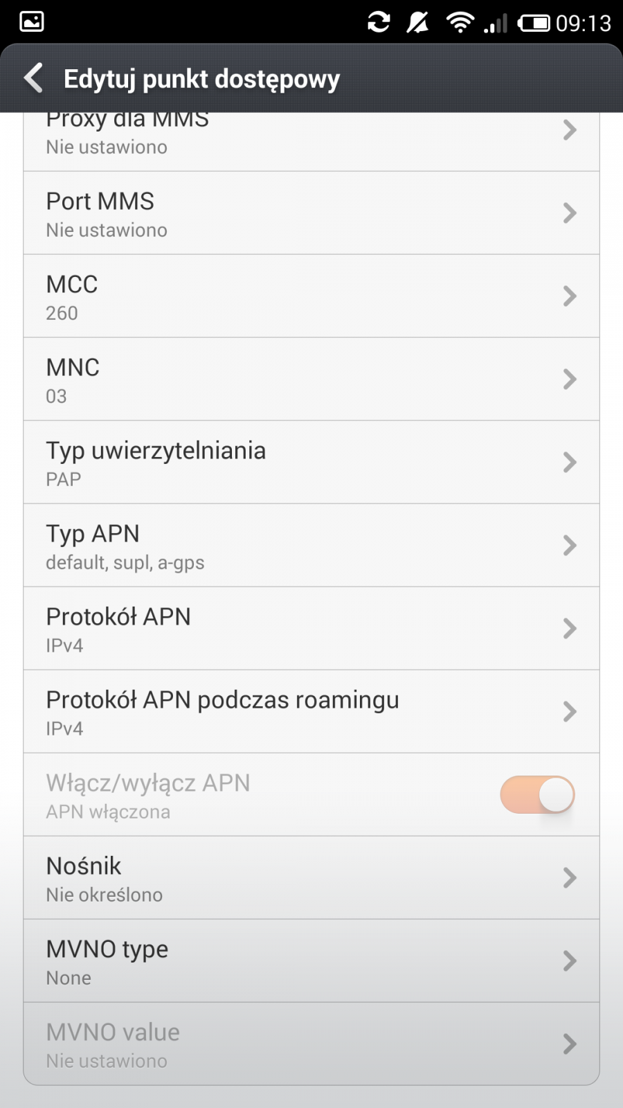 niemamloginu Opublikowano 25 Maja 2014 Autor Opublikowano 25 Maja 2014 A co się dzieję - w ogóle nie masz internetu, żadna ikonka ( E,3G.H,H+) się nie wyświetla, spróbuj wyłączyć i włączyć telefon , co masz napisane w Ustawienia - Sieci komórkowe - punkty dostępowe - Internet apn i mms apn Niby mruga ikona H i strzałki w dwie strony, ale po chwili znika i pojawia się "odrzucono" przy wysyłaniu MMS. Resetowałam już telefon, nic to nie dało. A tu zrzuty z ustawień, które wczoraj znalazłam w internecie: