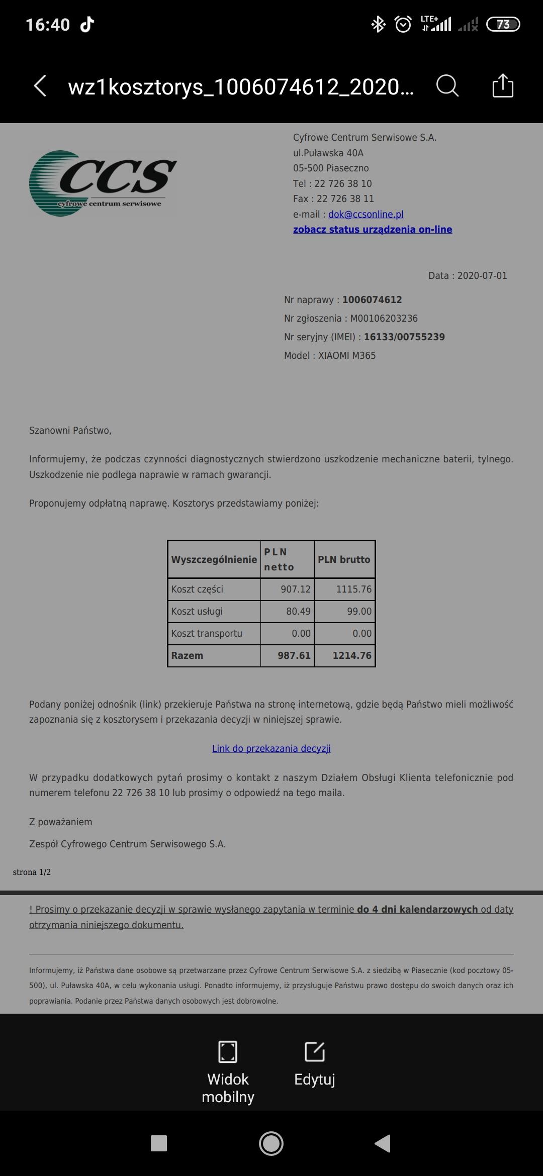 Witam, miesiąc temu kupiłem hulajnogę Xiaomi m365 przejechałem na niej około 300km przez 2 tygodnie i po tym czasie zaczęły się problemy typu , podczas jazdy chwilowo traci moc i po 2-3 sekundach znowu jedzie, zaczyna szarpać oraz po zatrzymaniu przez chwilę kręci się jeszcze koło. Na hulajnodze nie miałem żadnych upadków. Odesłałem ja oczywiście na gwarancję lecz dzisiaj dostałem odpowiedź że jest to spowodowane uszkodzeniem mechanicznym baterii. Macie może jakieś pomysły co w tej sytuacji poradzić? Z góry dziękuję za każdą odpowiedź.