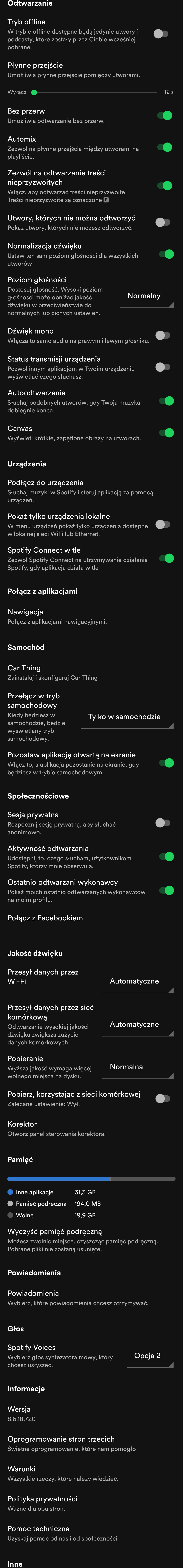 Michaelo Opublikowano 19 Kwietnia 2021 Opublikowano 19 Kwietnia 2021 Witam, telefon Xiaomi Redmi Note 8 Pro. Aplikacja spotify. Generalnie mam ustawioną opcje odtwarzania podobnych piosenek po zakończeniu wyszukanej, lecz bardzo często przestaje ona działać, pomimo że nadal jest zaznaczona. Po prostu utwory nie odtwarzają się automatycznie po zakończeniu wyszukanej piosenki, nie da się jej nawet przewinąć ręcznie. Trzeba wyszukac kolejną, nową, bądź odtworzyć te samą ponownie. Pisałem już o tym do supportu spotify, jest na to patent aby wylogować się z aplikacji i zresetować telefon, po czym wejść na nowo (i tak, działa to ale na bardzo krótko) , ale robienie tego kilka razy dziennie po prostu wytrąca mnie już z równowagi. Czy macie jakieś pomysły jak to naprawić? Dodam tylko, że na tym samym koncie na komputerze wszystko śmiga bez zarzutów. Proszę o pomoc, próbowałem już wszystkiego. Brakuje kasy na leki uspokajające : p Ustawienia w załączniku, konto premium. Pozdrawiam i liczę na pomoc, bo szykuje się zmiana odtwarzacza, choć bardzo bym tego nie chciał.