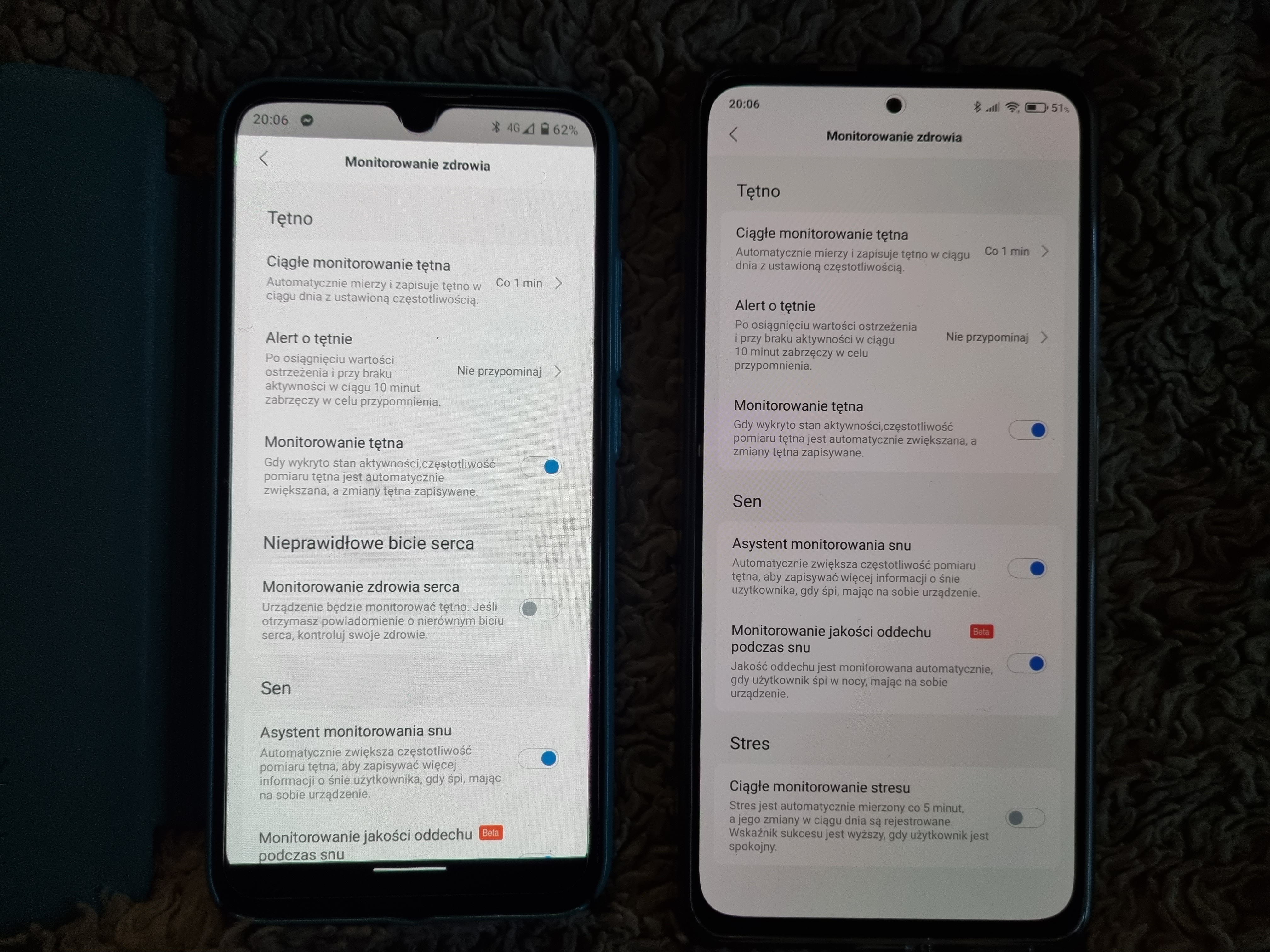 pkonrad Opublikowano 17 Maja 2021 Autor Opublikowano 17 Maja 2021 Wpadła mi dzisiaj w ręce chińska wersja opaski Mi Band 6 i w trakcje konfiguracji zauważyłem dodatkową funkcję w aplikacji Mi Fit w sekcji Monitorowanie zdrowia. Chińczyk ma dodatkową funkcję Monitorowania zdrowia serca, której brak w Globalnej wersji opaski. Oczywiście wersja firmware opaski jak i wersja aplikacji Mi Fit jest ta sama w obu opaskach i na obu telefonach.