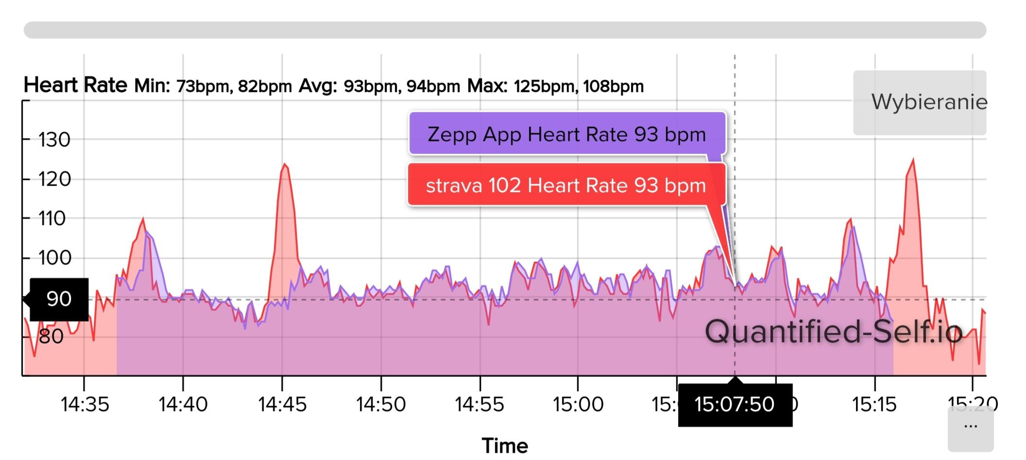 slimak131 Opublikowano 20 Października 2023 Autor Opublikowano 20 Października 2023 (edytowane) Balance vs pas garmin. (Bieganie?) Z wstępnych porównań, w Balance, tak jak gtr4, pomiar pulsu jest bardzo dokładny, ale z okazjonalne złymi odczytami. Gtr4 rower. Gtr4 godzinę wcześniej w przeciwną stronę. Gtr4 z ogolonym nadgarstkiem. Rower stacjonarny. Całkiem nieźle. Rower po asfalcie. Jednak golenie nadgarstka nic nie zmieniło. 😞 Edytowane 27 Października 2023 przez slimak131