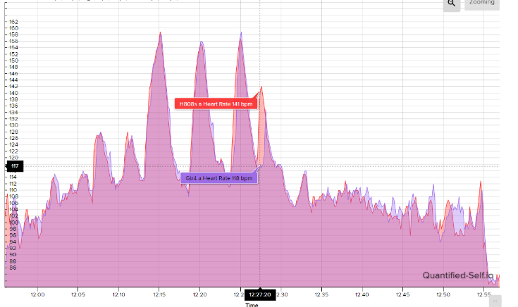 slimak131 Opublikowano 8 Kwietnia 2023 Autor Opublikowano 8 Kwietnia 2023 (edytowane) Zrobiłem własne porównanie gtr4 z: Pas na klatkę H808s Pulsometr na palec xy-010 Ćisnienomierz DS-1873 Pomiar na siedząco i stojąc, w zakresie do 100-110 bpm. Wszystkie urządzenia wskazują właściwie to samo bpm. Pomiar pomiedzy 120-145. H808s 120-145 xy-010 120-145, po 5 min z powodu potu 0 bpm. DS-1873 120-145, i często error, pewnie od wstrząsów. Gtr4 pokazuje około 100, po dłuższym czasie 120-145. Pomiar na rowerze stacjonarnym, gtr4 i H808s. Pomiar na rowerze, H808s i gtr4. 1. 2. 3. Wykresy synchronizowałem danymi prędkości. Wykresy wygenerowane na https://sporttracks.mobi/dashboard Zegarek noszę w miarę luźno zapięty i w czasie pomiarów też tak miałem zapięty. Edytowane 8 Kwietnia 2023 przez slimak131