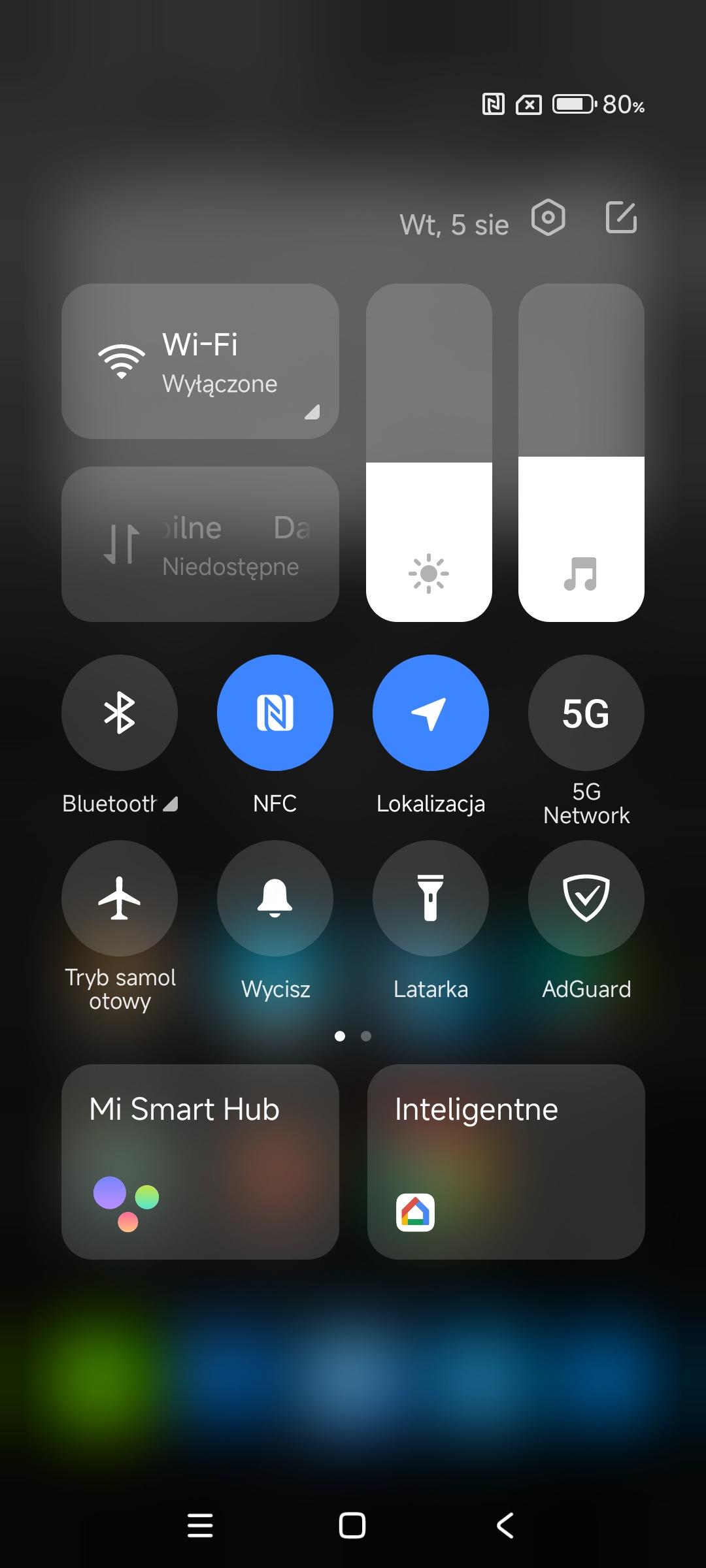 + zamieniony panel powiadomień na jakieś coś dziwnego, gdzie nie ma powiadomień, tylko jest jakaś animacja, pojawia się coś pełnego widgetów i wielkimi ikonami możliwych funkcji: