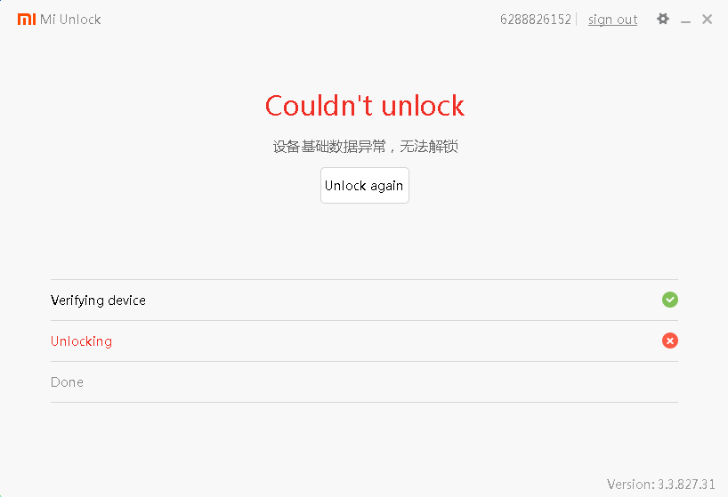 korbielow Opublikowano 11 Lutego 2020 Opublikowano 11 Lutego 2020 (edytowane) Po przerwie wracam z moim nieszczęsnym Redmi 3s. Wgrałem najstarszy mozliwy chinski soft przez kabel deep flash. Włożyłem i aktywowałem karte. zalogowałem się do konta mi. i mam takie teraz błedy :(/ DEBUG <15:26:02.130,T:4080> : -s 3743e4a87d02 oem device-info DEBUG <15:26:02.178,T:4080> : ... (bootloader) Device tampered: false (bootloader) Device unlocked: false (bootloader) Device critical unlocked: false (bootloader) Charger screen enabled: true (bootloader) Display panel: OKAY [ 0.008s] finished. total time: 0.008s DEBUG <15:26:07.068,T:4080> : VerifyDeviceInfo INFO <15:26:07.069,T:4080> : product:land DEBUG <15:26:07.069,T:4080> : getvar token -s 3743e4a87d02 DEBUG <15:26:07.792,T:4080> : token: CIr2p7OWurQZDPr1ieLrSQAA finished. total time: 0.002s DEBUG <15:26:07.793,T:4080> : to sign token with key for device:land DEBUG <15:26:11.935,T:4080> : sign result:{ "code" : 20039, "descCN" : "设备基础数据异常,无法解锁", "descEN" : "Device basic data verification failed. This device couldn't be unlocked.", "description" : "设备基础数据异常,无法解锁", "uid" : "6288826152" } DEBUG <15:26:11.936,T:4080> : unlock return:11111 msg:Device basic data verification failed. This device couldn't be unlocked. Tego urzadzenia chyba nie da sie odblokowac ??? Edytowane 12 Lutego 2020 przez korbielow