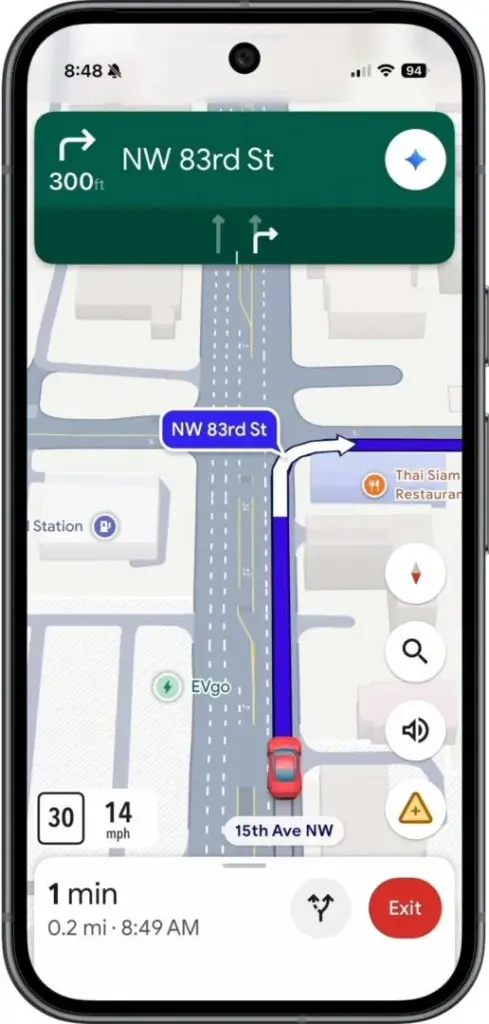 Nowe Mapy stawiają na bardziej „ludzkie” komunikaty. Zamiast suchych instrukcji, jak „skręć w prawo za 150 metrów”, usłyszysz coś znacznie bardziej intuicyjnego: „Skręć za czerwonym budynkiem z muralem” albo „Za apteką odbij w lewo”. W końcu to, co widzimy, jest często bardziej pomocne niż liczby.