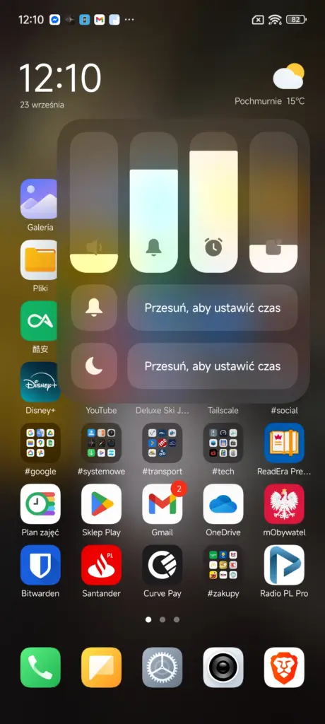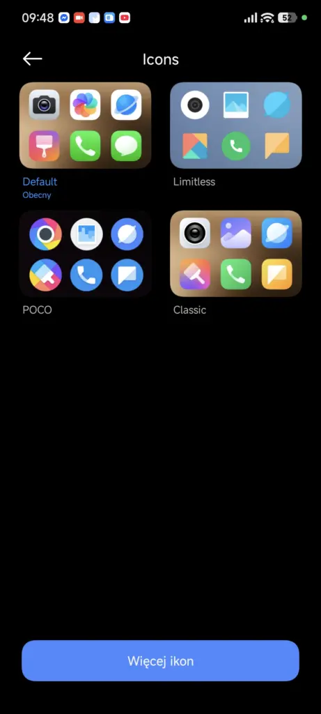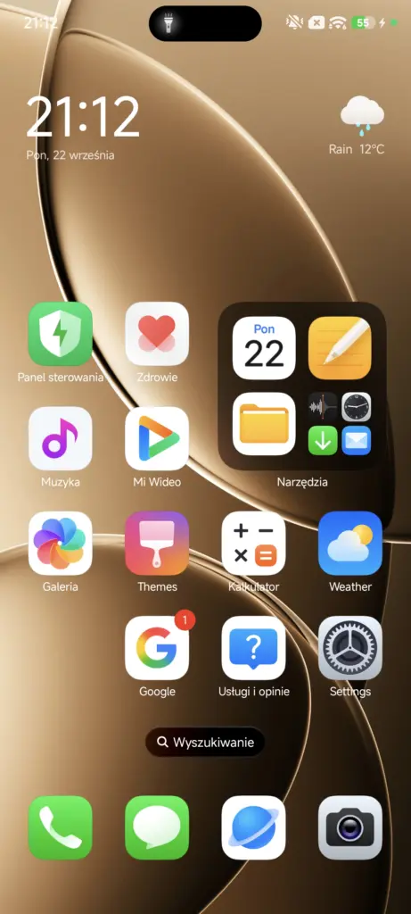 Po odblokowaniu urządzenia naszym oczom ukażą się nowe ikony, o których już pisałem w artykule tuż po premierze nakładki i zdania nie zmieniam – to kolejna „inspiracja” z iOS-a 26, a właściwie rzecz ujmując, zrzyna. No ale w końcu Xiaomi porównuje się teraz do Apple’a, więc… kto im zabroni? Odpukać, nie jesteśmy zmuszeni do trzymania tych ikon na siłę, bowiem w menu wyboru ikon możemy je zmienić na te znane do tej pory.