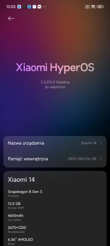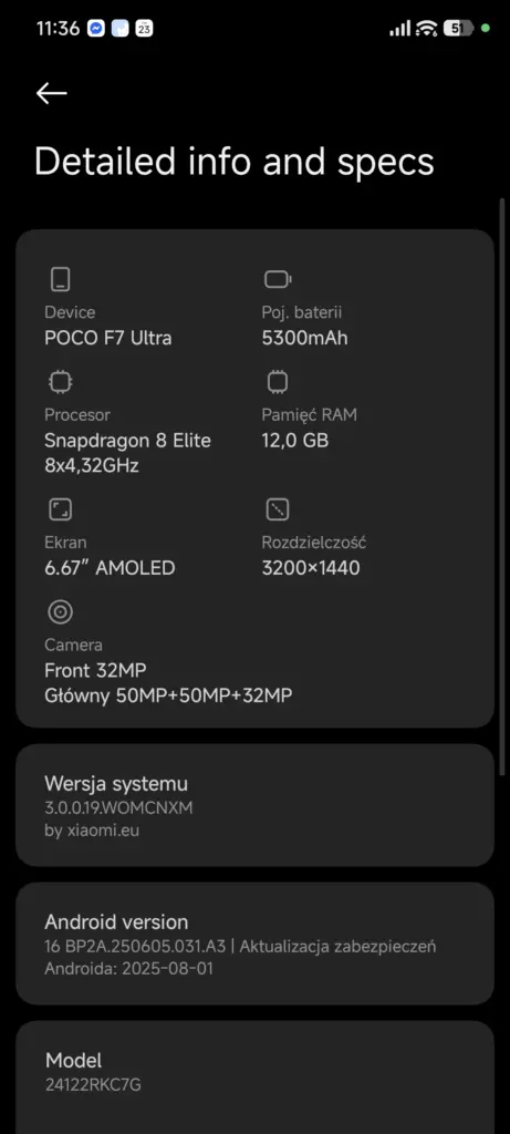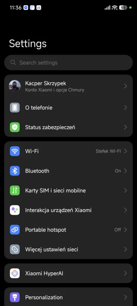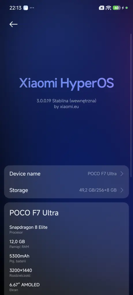Do porównań wykorzystałem telefony: Xiaomi 14, z HyperOS 2 w wersji OS2.0.212.0.VNCCNXM opartej na Androidzie 15, i POCO F7 Ultra, z HyperOS 3 w wersji OS3.0.0.19.WOMCNXM opartej na Androidzie 16 (zrzuty częściowo po angielsku ze względu na braki w tłumaczeniach, w finalnej wersji tego problemu nie będzie).
