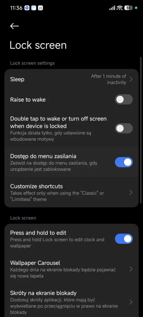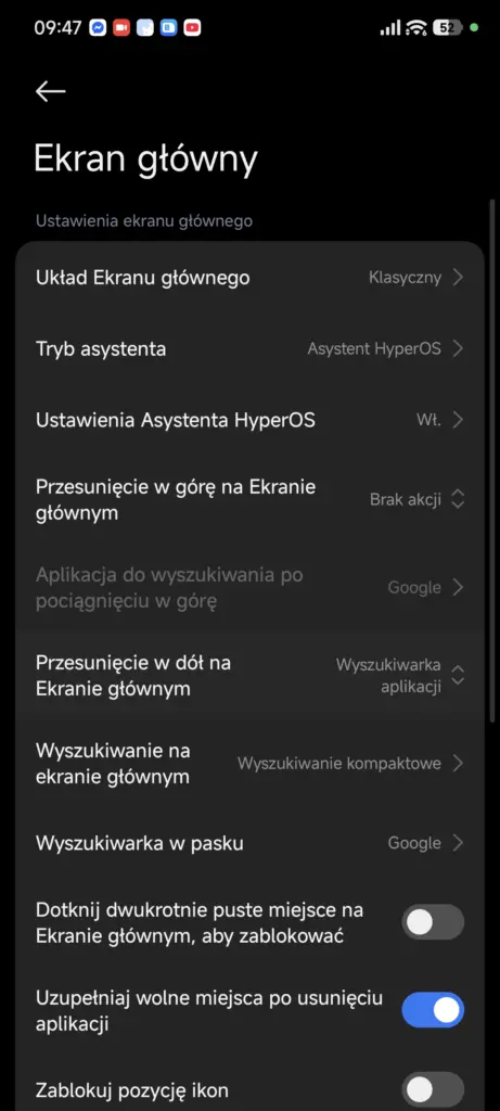 Co nieco zadziało się w aspekcie personalizacji. W HyperOS 2 możliwe było ustawienie paru zestawów styli Ekranu blokady; w HyperOS 3 ta opcja została rozszerzona także na Ekran główny. Oznacza to, że możemy ustawić parę zestawów styli, które będą obowiązywać na obu ekranach i przełączać się między nimi, choć w przypadku Ekranu głównego opcje personalizacyjne są dość ograniczone – możemy zmienić przede wszystkim tapetę i jej rozmycie.
