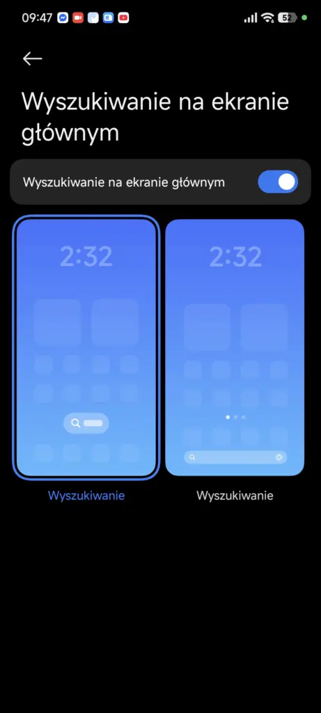 Poza nowymi ikonami kolejnym podobieństwem do nowej wersji iOS-a jest zmniejszony względem HyperOS 2 przycisk wywołujący wyszukiwanie Google, który wyglądem przypomina również wprowadzony przez Apple (co za niespodzianka!) styl Liquid Glass. Jest to jednak jedno z nielicznych miejsc w nakładce od Xiaomi, gdzie ten styl jest tak bardzo widoczny. Tak jak w przypadku ikon, nie musimy tego przycisku mieć; możemy go bowiem całkowicie usunąć bądź zastąpić wariantem znanym z HyperOS 2.