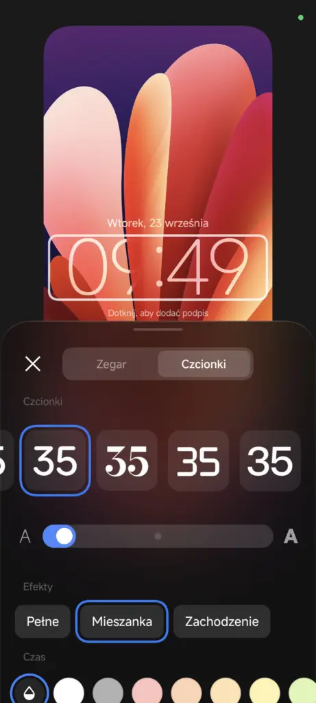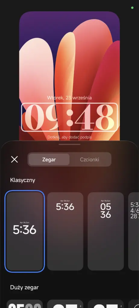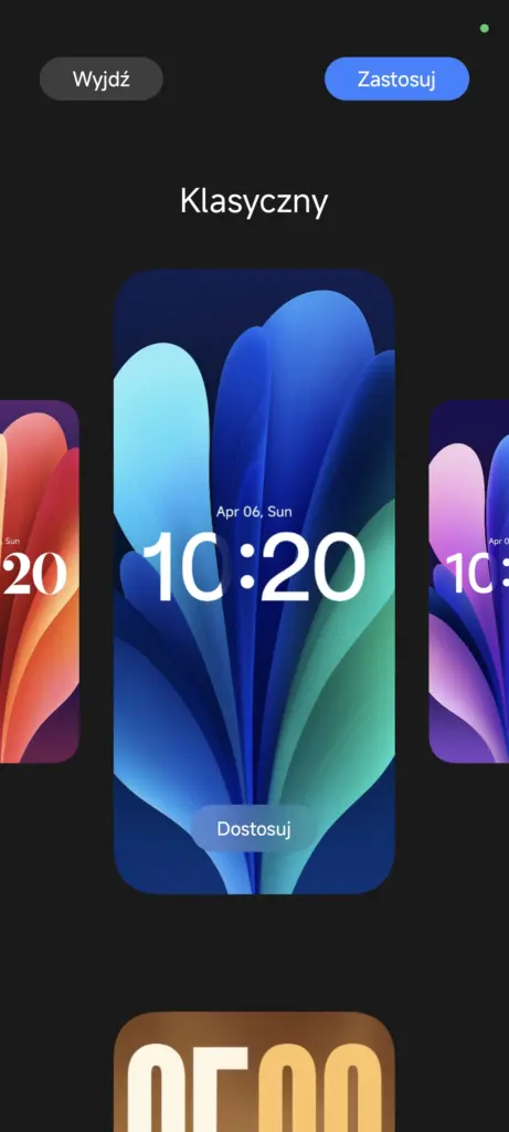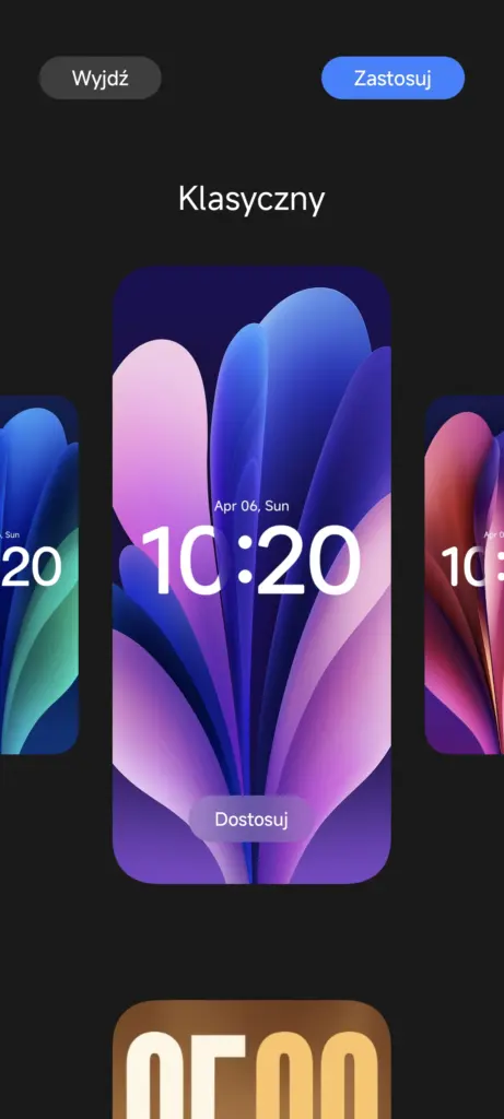 W kwestii zegara warto odnotować pojawienie się jego nowego, wycentrowanego pionowo i poziomo stylu, a także możliwości zmiany grubości czcionki zegara (choć nie we wszystkich wariacjach – nie zrobimy tego np. w stylu zegara wyrównanego do lewej strony, znanego z HyperOS 2, a także w stylach oznaczonych jako Duży zegar). O tym, że tapety „klasyczne” ponownie przypominają te z nadgryzionego jabłka, chyba nie muszę wspominać… ;)