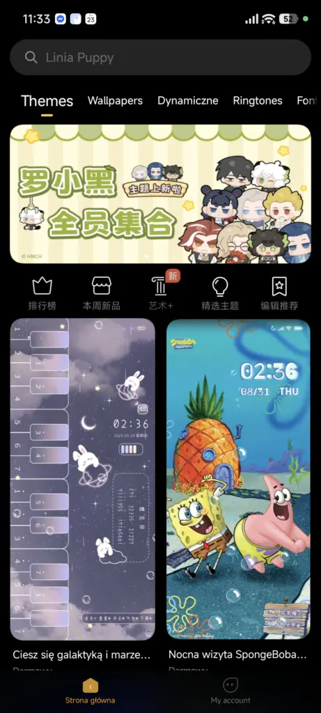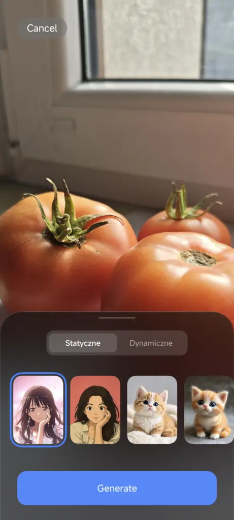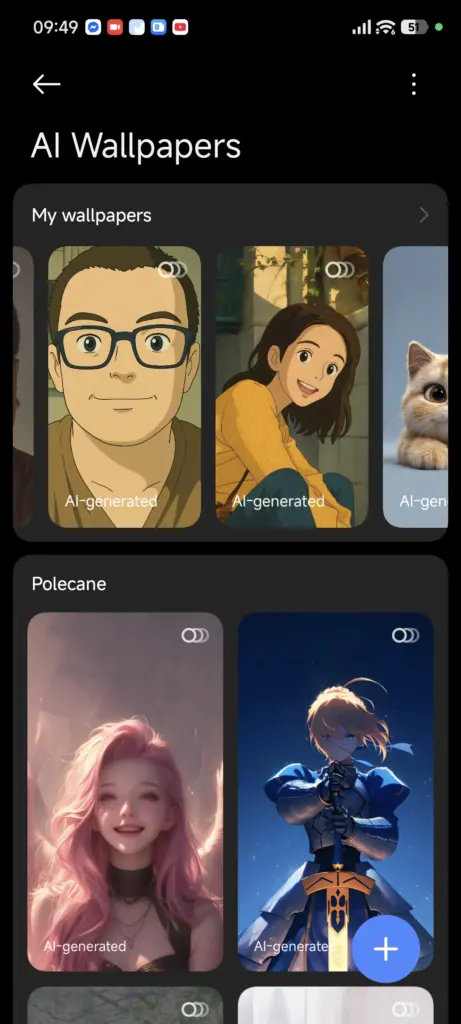 Aktualizacja spotkała również funkcję Tapet SI. W jej menu teraz automatycznie ładują się online (a nie tylko te wewnątrz aplikacji) polecane przez Xiaomi tapety wygenerowane przy pomocy sztucznej inteligencji, a przy generowaniu swojej tapety możemy wybrać jeden z kilku styli, na wzór którego serwer (funkcja wciąż nie jest dostępna offline) wygeneruje odpowiednią tapetę (statyczną bądź dynamiczną, w zależności od naszego wyboru). Tapety SI wykorzystują aplikację Motywy – nie wiem, czy te zmiany w tej samej formie trafią do globalnej wersji aplikacji (korzystam z chińskiej).